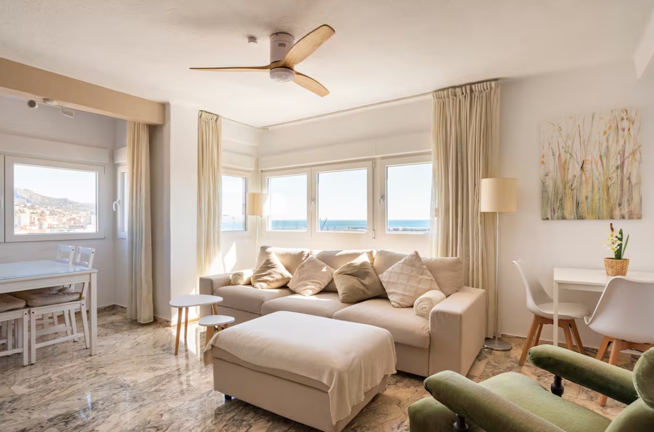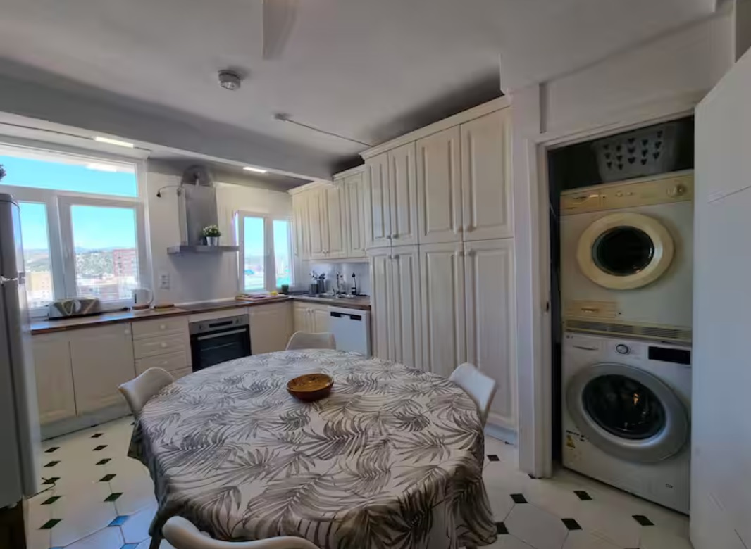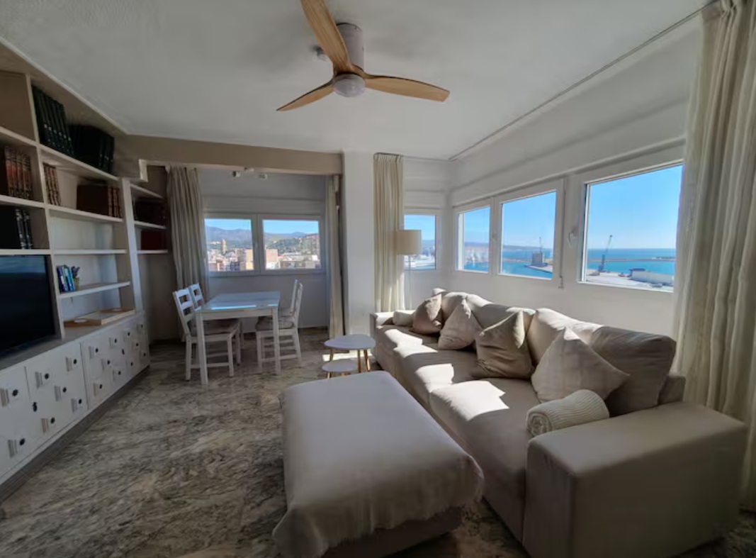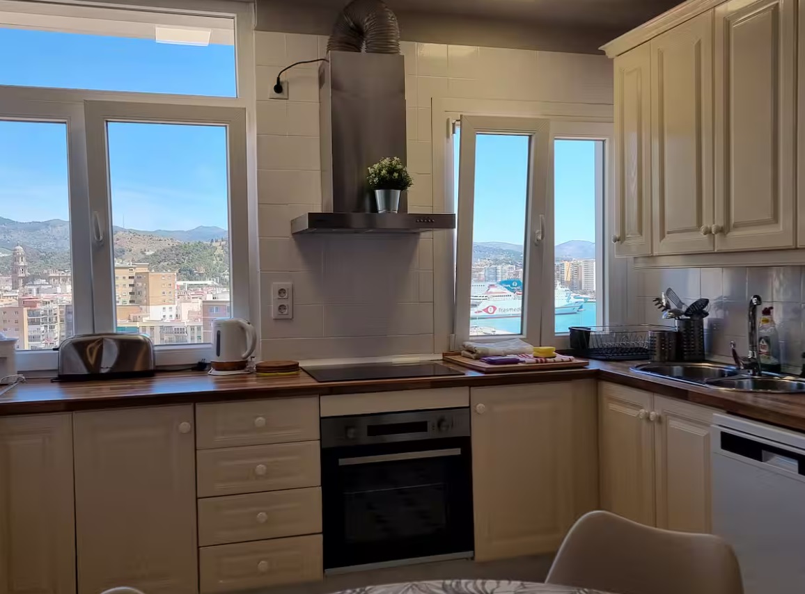 Está muy cerca de la Estación de Tren María Zambrano, de la Estación de Autobuses de Málaga y del casco histórico: Podrás ir caminando a muchos lugares de interés turístico. Zona equipada con 3 centros comerciales, multitud de tiendas, bares y restaurantes, centros de salud, farmacia en el mismo edificio y Centro Welness a pocos pasos. Luminoso apartamento con amplia cocina-comedor y con balcón. Con vistas al mar, a la ciudad, a la montaña y a lugares de interés como el Castillo de Gibralfaro, la Alcazaba, la Catedral, el Puerto de Málaga y la Farola: El salón, la cocina-comedor, los dos dormitorios y el balcón tienen unas vistas panorámicas de Málaga, tanto de día como de noche, muy bonitas. En el precio se incluye una plaza de aparcamiento privado cubierto. Equipado con: aire acondicionado/calefacción de motor central con 3 splits, ventiladores de techo, lavadora, secadora, plancha, tendedero, lavavajillas, nevera, horno, vitrocerámica, microondas, tostadora, exprimidor, batidora, hervidor de agua, cafetera de cápsulas, italiana y de filtro. Termo mixto (bomba de calor y eléctrico).