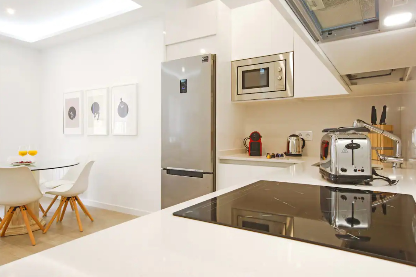 El apartamento en Madrid posee 2 dormitorio(s) y capacidad para 6 personas. Se encuentra a 50 m del supermercado “Carrefour 24hs”, 16 km del aeropuerto “Aeropuerto Madrid-Barajas “, 1 km de la estación de tren “Sol Renfe”, 1 km de la estación de tren “Atocha Renfe”, 50 m de la estación de autobuses “Lavapies Linea M1 – Parada 4045”, 5 m del restaurante “Casa de Asturias” y está ubicado en una zona ideal para familias y en el casco urbano. Dispone de ascensor, plancha, caja fuerte, acceso internet (wifi), secador, calefacción radiadores eléctricos, aire acondicionado, 3 Televisores, radio.