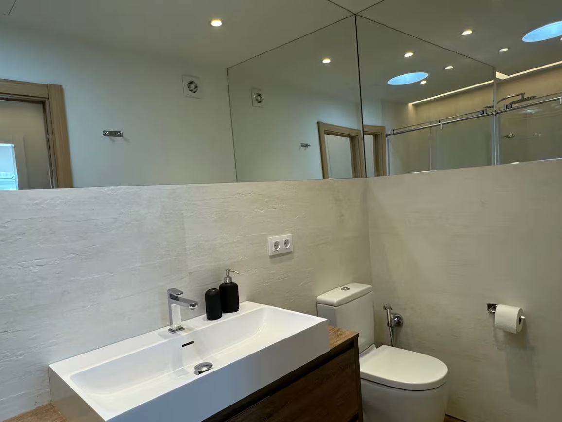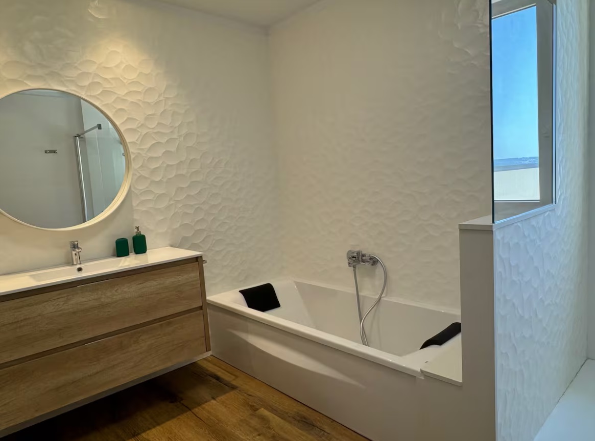 Dispone de tres habitaciones dobles, dos baños y terraza con vistas espectaculares. Totalmente equipado: Tv, wifi, menaje, ropa blanca, lavandería, barbacoa, mini gimnasio y sala de juegos exterior.