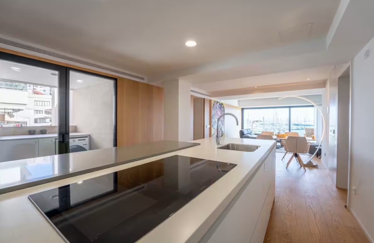 Tienes el fantástico Paseo Marítimo, el paseo marítimo del puerto, justo al lado de la puerta principal. Con un aperitivo en el balcón podrás disfrutar de una vista fantástica del puerto. Santa Catalina se encuentra a 5 minutos a pie y el centro de la ciudad con catedral está a menos de 15 minutos. También hay tiendas cerca. Este moderno apartamento amueblado se encuentra en una ubicación única justo en el paseo marítimo del puerto con fantásticas vistas al mar, los yates y la catedral. Ya sea que quieras dar un largo paseo hasta la playa de la casa de Palma, hacer ejercicio o caminar hasta la ciudad, hay algo para todos.