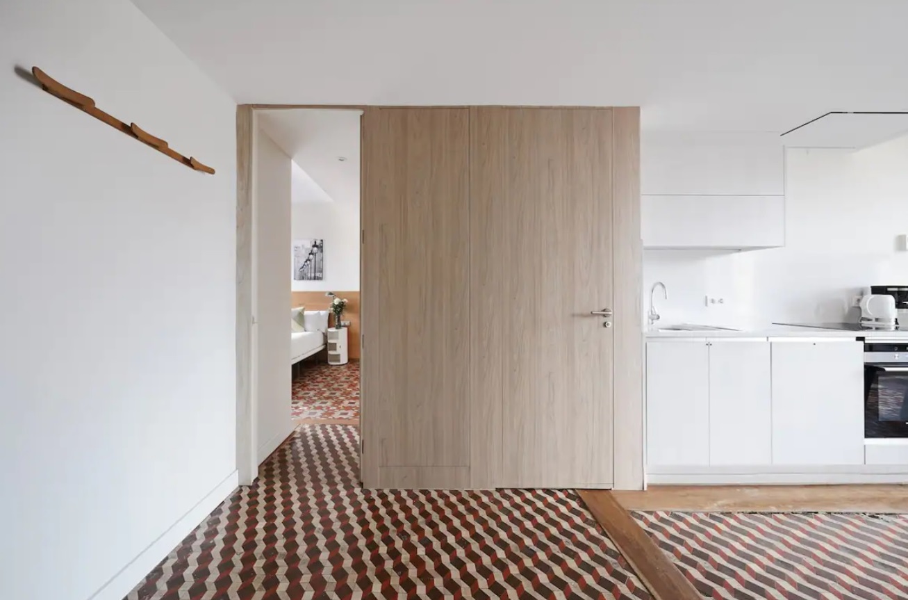 Equipado con cálidos suelos de parquet color miel, este fantástico apartamento está decorado con un estilo moderno y decorado en tonos neutros para crear un ambiente luminoso y fresco perfecto para una estancia única en el centro de Barcelona. El espacioso comedor-salón con una moderna cocina abierta totalmente equipada es la pieza central de esta magnífica propiedad, amueblada con una mesa de comedor de madera y una relajante sala de estar con un sillón y un sofá cama individual. Sus dos pequeñas ventanas del balcón se abren a las vistas, los sonidos y los olores del pintoresco mercado de la Boquería. La zona de descanso consta de dos dormitorios con dos camas individuales y un dormitorio doble con baño privado con ducha. Luminosas y espaciosas, todas están decoradas en tonos de gris compensados por cálidos muebles de madera. El segundo baño con ducha está fuera del pasillo. El apartamento tiene acceso a una increíble terraza comunitaria con excelentes vistas a La Rambla.