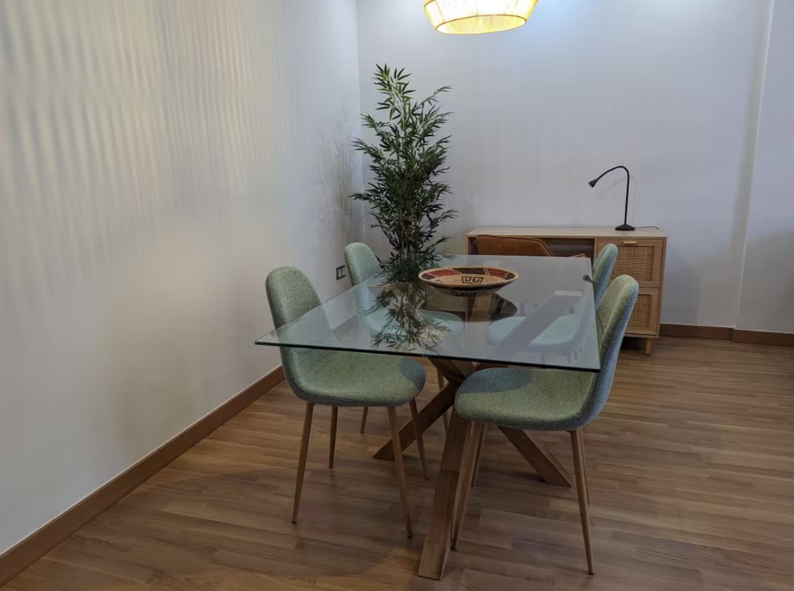 Está diseñado para que un grupo de hasta seis personas disfruten de una estancia cómoda e inolvidable en la capital sevillana. Camas de calidad, duchas amplias, todo está pensado para garantizar el descanso. Aparque en nuestrol parking incluido en el precio y olvídese del coche. Todo se puede visitar a pie. El espacio es grande, de unos 160m2, por lo que hay espacio de sobra para hasta 6 personas. Su gran comedor para 6-8 personas permite disfrutar de cenas con familia o amigos para después relajarse en su gran sofá.