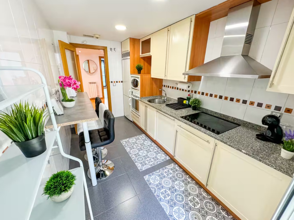 Amplio salón-cocina donde descansar, cocina totalmente equipada. Con Wifi, Smart TV y espacio para trabajar, terraza para tomar el sol. Cuenta con Piscina Comunitaria. Decorado y amueblado recientemente con las mejores calidades para su disfrute. Excepcional apartamento, perfectamente ubicado y equipado. Este espacioso alojamiento ofrece cuatro habitaciones y dos baños, junto con un amplio salón-cocina donde podrás descansar y compartir momentos especiales. La cocina totalmente equipada te permite preparar comidas caseras con facilidad, mientras que el Wifi de alta velocidad y la Smart TV garantizan entretenimiento y conectividad constante. Además, hay un cómodo espacio de trabajo para quienes necesiten mantenerse productivos durante su estancia. Está estratégicamente ubicado en un barrio tranquilo y bien conectado, con fácil acceso a tiendas locales, restaurantes y transporte público.