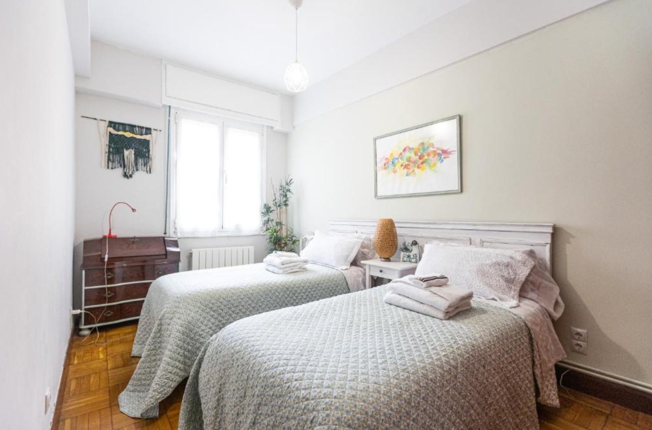 La propiedad cuenta con tres habitaciones y un baño, lo que garantiza un amplio espacio para todos los huéspedes. Wifi , ascensor, parque infantil.. El apartamento se encuentra a 9 km del aeropuerto de Bilbao, a pocos pasos de la estación de metro de San Mamés (12 minutos) y del Museo de Bellas Artes de Bilbao (1 km). Entre los lugares de interés cercanos se incluyen el Museo Guggenheim Bilbao y el Puente de Calatrava, ambos a 3 km.