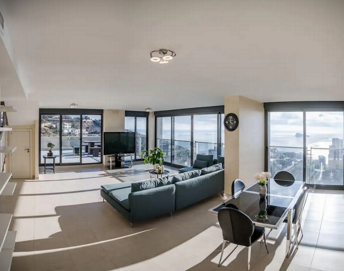 Este alojamiento único tiene 170 metros cuadrados de superficie. Vistas fantásticas de todo Benidorm e Isla de Benidorm. Disfruta de la paz del horizonte y del bullicio de la ciudad. Disfruta de acceso a una piscina, gimnasio, cancha de baloncesto y mucho más. Tres dormitorios, cada uno con un baño y vestidor separados, una gran sala de estar y una amplia terraza. Aparcamiento en el garaje de la casa. A cinco minutos a pie de la playa de Levante.