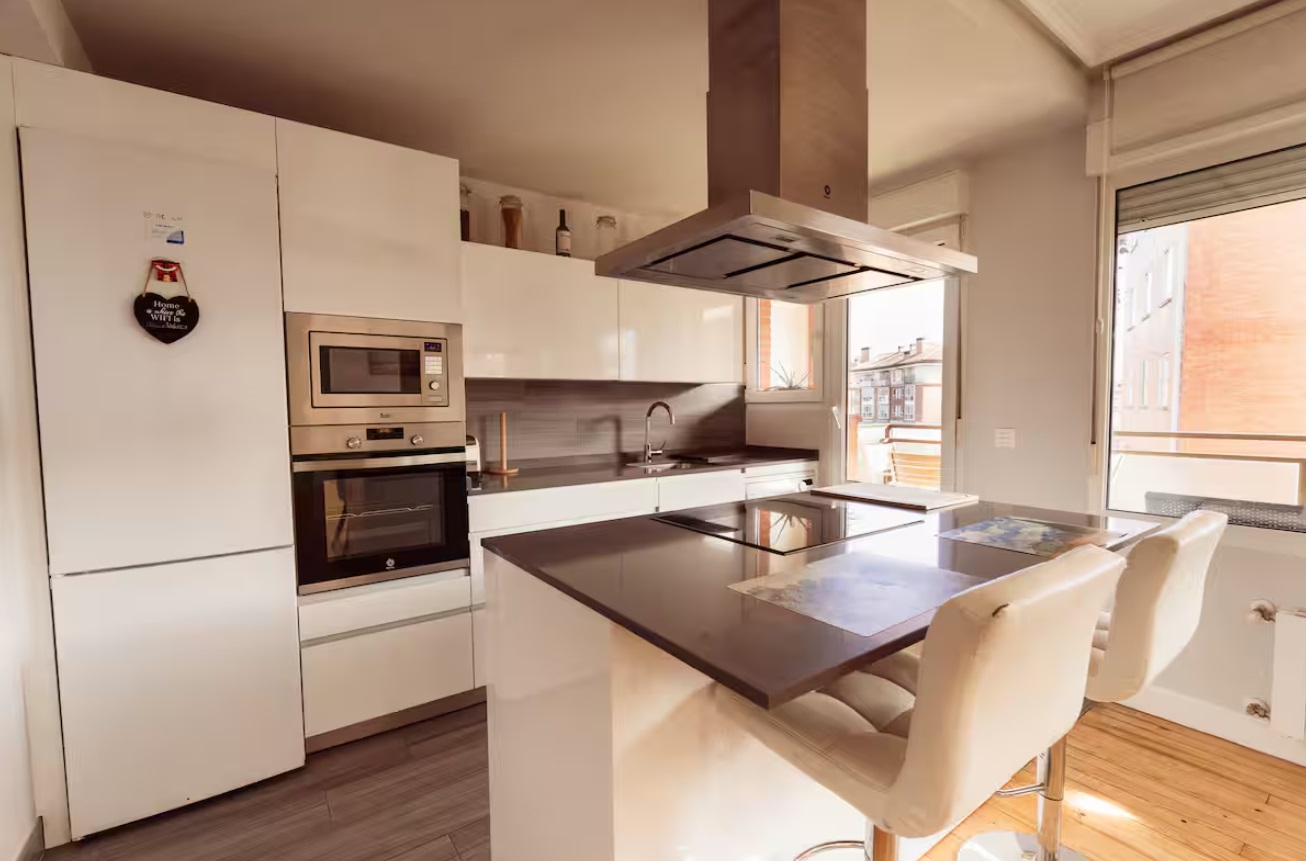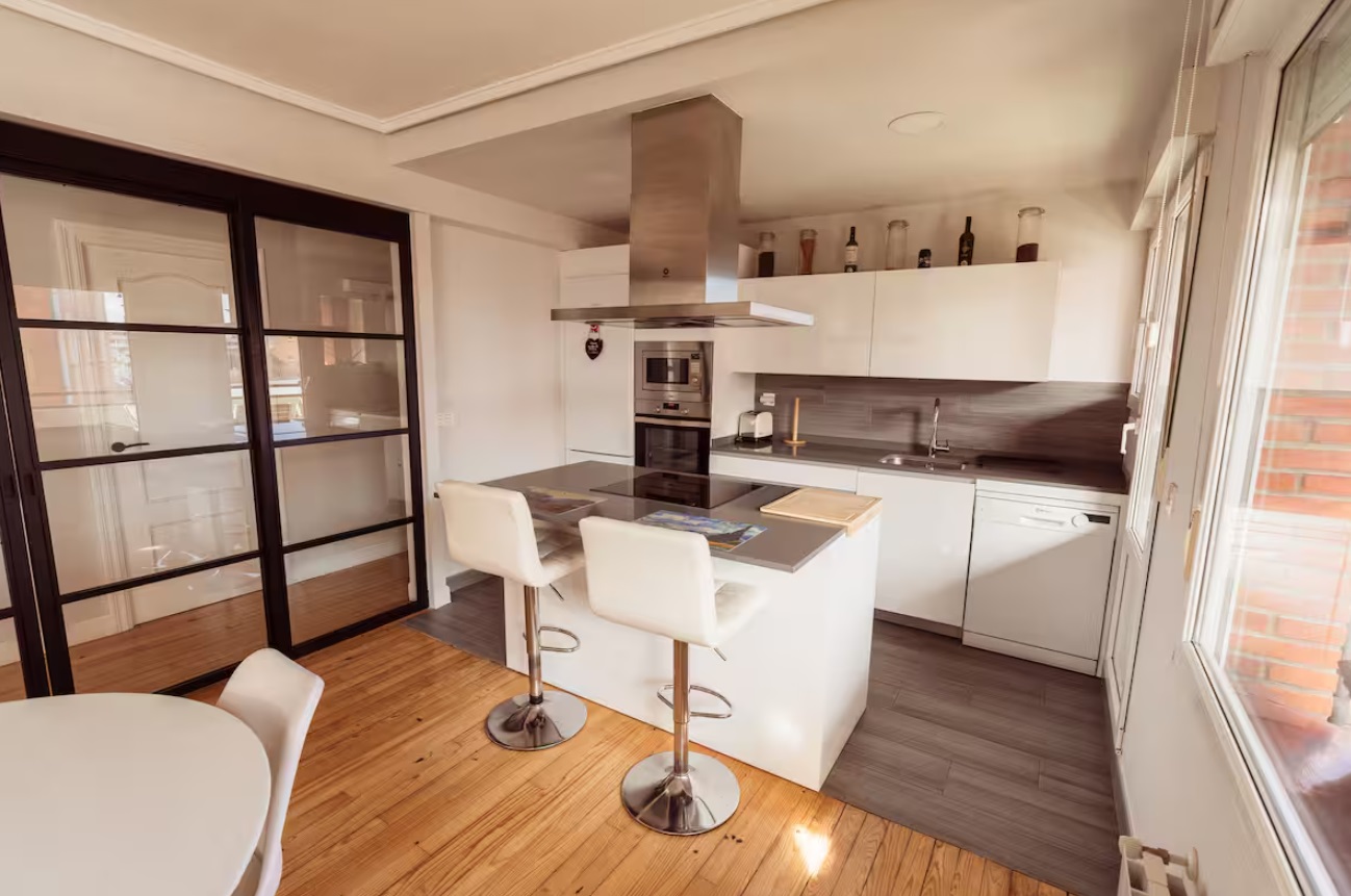 Espacioso apartamento con terraza soleada, perfecto para relajarte. Cuenta con parking privado gratuito en la puerta del edificio. Tiene 3 habitaciones, un baño y un salón-comedor abierto con cocina de isla. Está en un barrio tranquilo, con parques, paradas de autobús y estación de bicis eléctricas cerca. El alojamiento se encuentra en el barrio de Artazagane, en Leioa, una zona residencial y tranquila con parques. Se encuentra a solo 5 minutos de la Universidad de Leioa en coche o bus directo.