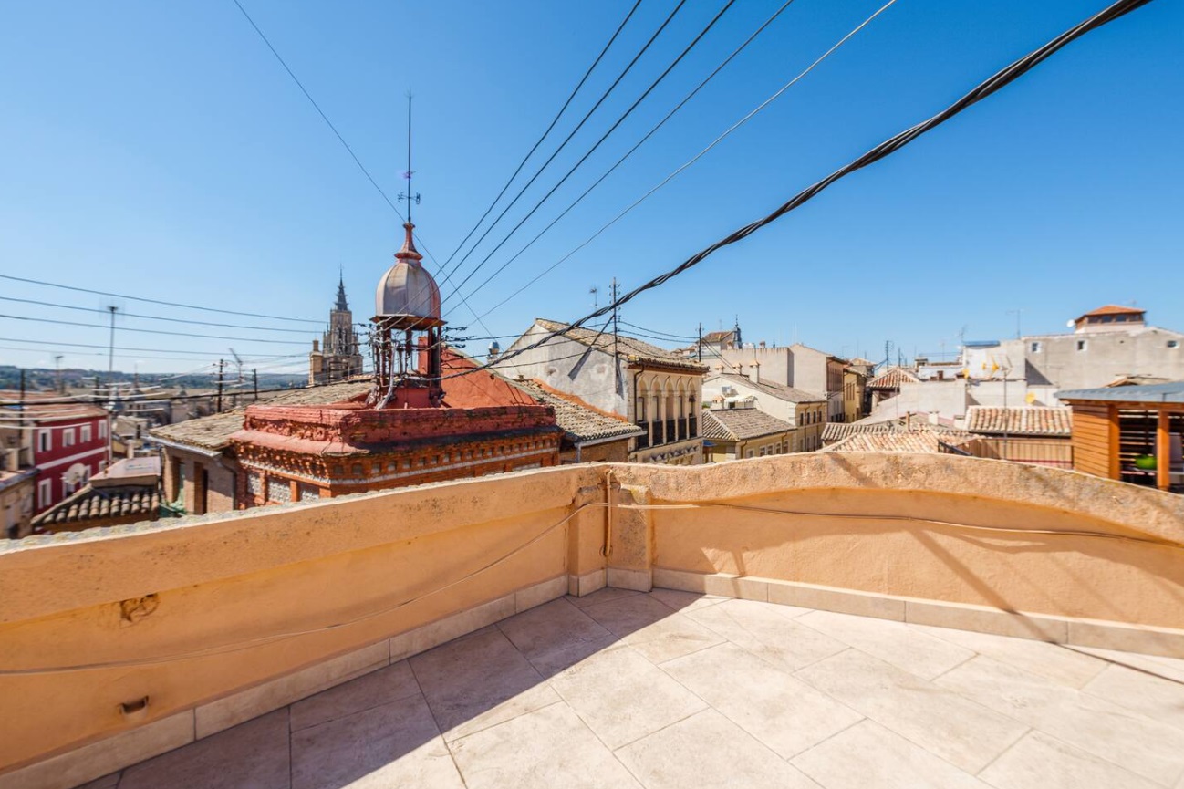 Calefacción y aire acondicionado. Situado en junto a la Plaza de Zocodover en pleno Casco Histórico de Toledo con capacidad para 6 personas, ubicado junto a museos, atracciones turísticas, tiendas, restaurantes, bares, discotecas, etc… A escasos metros de la Catedral Primada de Toledo. El apartamento está ubicado en un edificio histórico con más de 100 años de historia recientemente reformado donde se respetó parte de la estructura original y elementos arquitectónicos del edificio original.