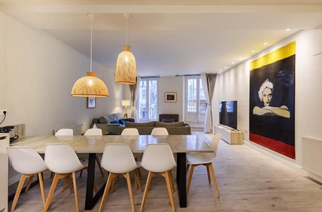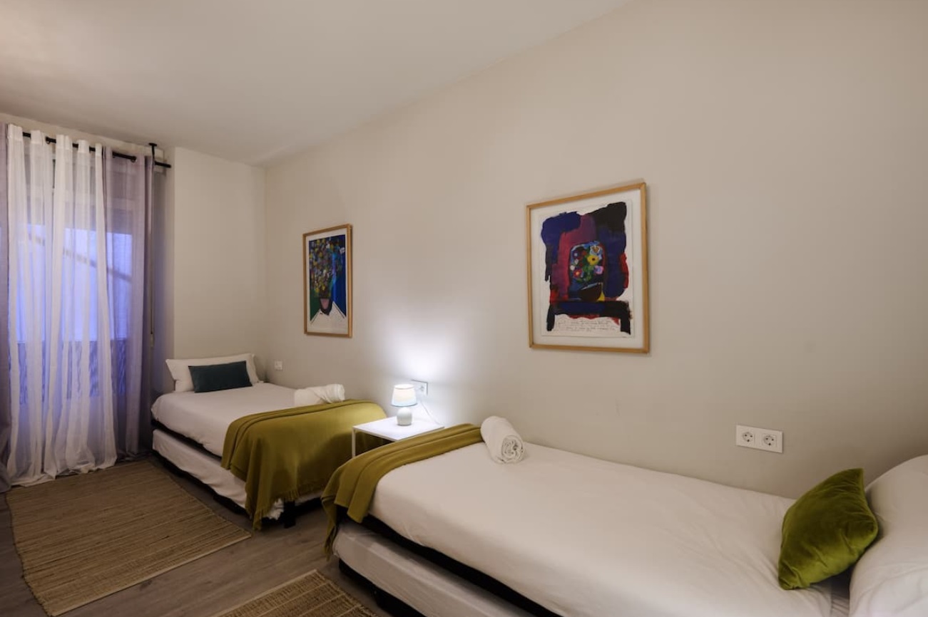 Está situado en el centro del Casco Antiguo de Pamplona. Con inmejorables vistas al encierro de los sanfermines desde sus dos balcones del salón, en primera línea del encierro! Se ve toda la calle de Mercaderes y también tiene espectaculares vistas a la famosa curva de Estafeta. Con todas las comodidades a mano: El mercado central a 1 minuto caminando, para los amantes de la gastronomía y la alimentación saludable. La Plaza del Ayuntamiento donde se lanza el cohete del inicio de las fiestas de Sanfermín, la Catedral de Pamplona, la fuente de Navarrería, la zona del Caballo Blanco o la Plaza del Castillo son algunos de los lugares para disfrutar caminando a muy pocos metros del apartamento. Además, la zona cuenta con numerosos restaurantes y bares de pinchos para poder degustar de la gastronomía local. Las habitaciones son muy amplias e interiores, por lo que están aisladas del ruido de la calle.