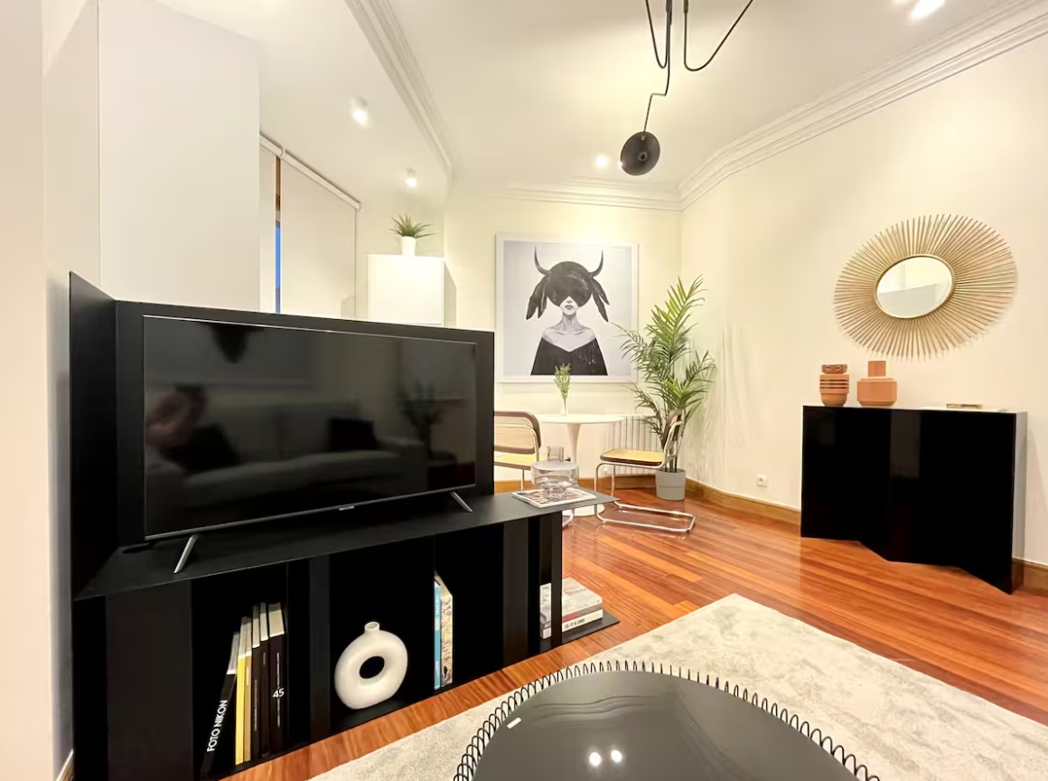 Disfruta de una experiencia de lujo en este céntrico alojamiento que ofrece la comodidad necesaria para una estancia inmejorable. Ubicado en un edificio señorial , construido en el año 1920 y rehabilitado por completo en el año 2005, a escasos 200 metros de la Puerta del Sol.Moderno y exclusivo apartamento, donde destaca su cuidada decoración y la altura de sus techos. Cuenta con WiFi, SmartTV con Netflix, toallas y sábanas de calidad premium, dos tipos de almohadas: dos medias y dos duras, placa de inducción, campana extractora, microondas, nevera, cafetera Nespresso, tostadora, vajilla, cubiertos, utensilios básicos de cocina, copas, secador de pelo, perchas, plancha, botiquín, calefacción, … y todo lo necesario para que tengas una estancia confortable.