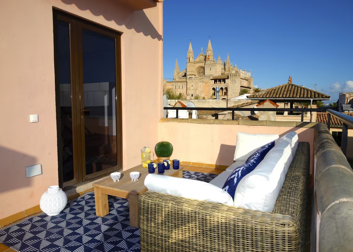 Fantástica terraza, La vivienda cuenta con calefacción central y aire acondicionado en todas las habitaciones, disponde de internet, wifi y TV Satélite. Apartamento de primera calidad con todas lo necesario para que disfrute de su estancia y una fantástica terraza, La vivienda cuenta con calefacción central y aire acondicionado en todas las habitaciones, disponde de internet, wifi y TV Satélite. La cocina esta completamente amueblada y equipada. La vivienda dispone de dos dormitorios independientes, uno con cama doble (150×190) y otro con dos camas individuales (90×190). Dispone de un baño completo. El apartamento está situado en la zona de la Lonja, a corta distancia a pie de innumerables puntos de interés de la ciudad de Palma como la Catedral o el Puerto. Una de las zonas más carismáticas y más cotizadas de la isla tanto por su situación, como por su carácter histórico.