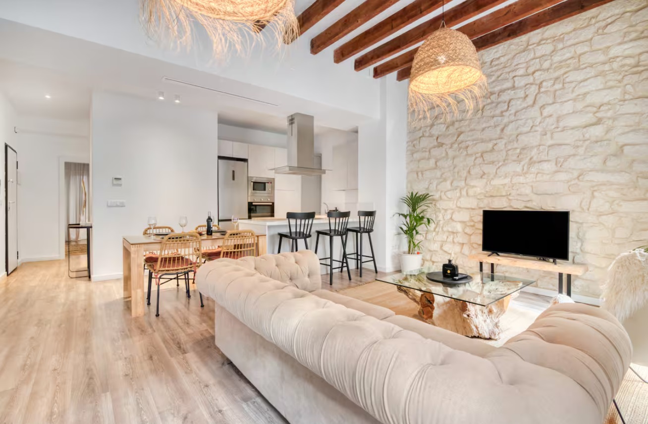 Este lugar especial está cerca de todo, lo que facilita la planificación de viajes. Esta hermosa casa se encuentra en un edificio histórico del siglo XIX en el centro de la ciudad de Alicante, justo al lado del histórico mercado central, a solo una calle de distancia, a 10 minutos a pie de la playa, y rodeada de famosos restaurantes y bares de entretenimiento. Tanto la vivienda como todo el edificio han sido completamente renovados. La casa occidental tiene ascensor y toda la casa tiene aire acondicionado central. El techo tiene una altura de más de 3.5 metros, lo que es muy hermoso. El vestíbulo de entrada abierto y la amplia sala de estar con comedor cuentan con dos balcones que dan a la calle, una cocina moderna y una isla. Hay tres dormitorios dobles y dos baños, uno de los cuales tiene un baño privado. El estilo único se combina con el diseño moderno y elegante, lo que lo hace diferente. Con un fácil acceso a la famosa playa de San Juan, este alojamiento en el centro de la ciudad está a solo un paso de tu familia.