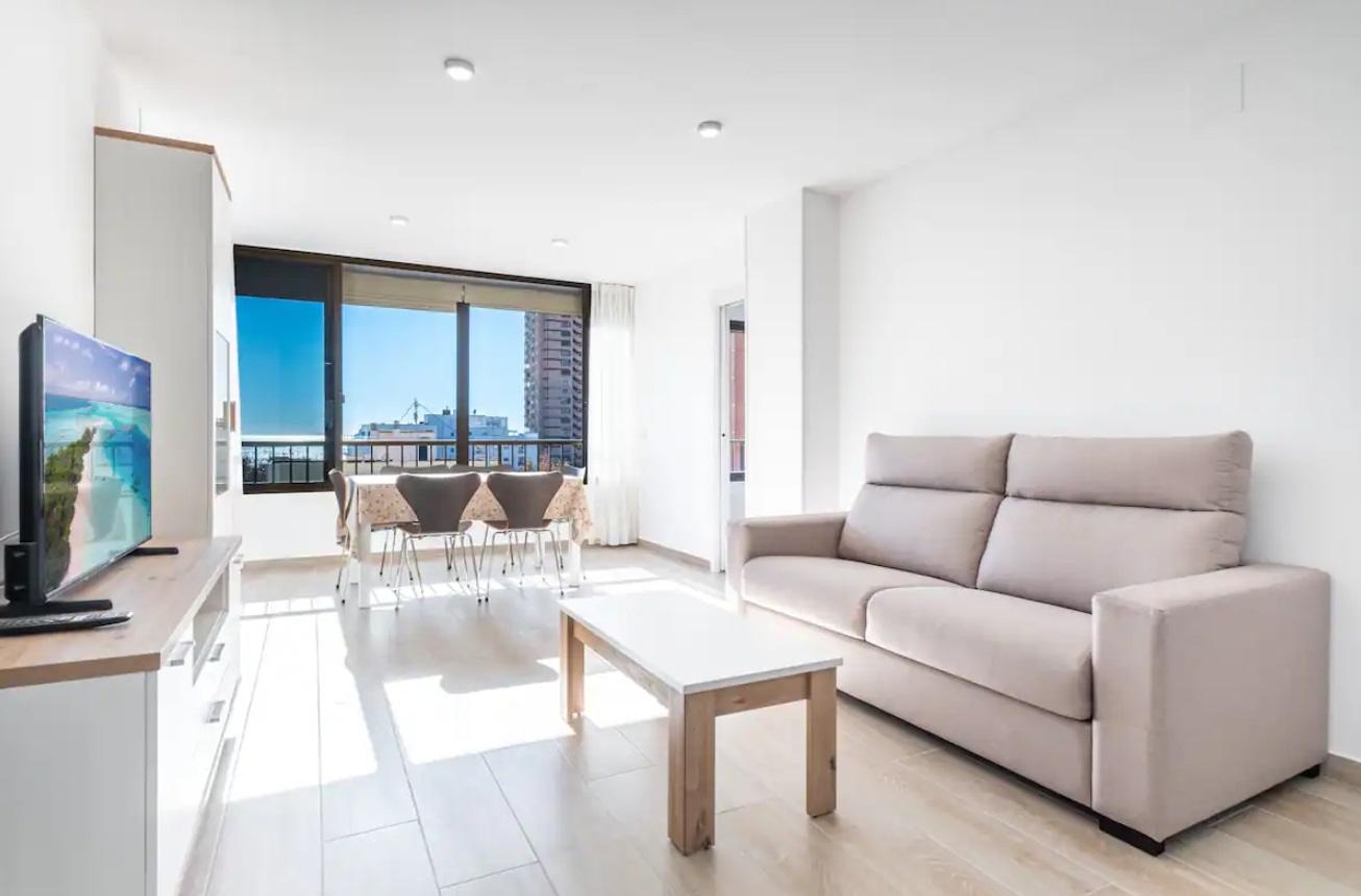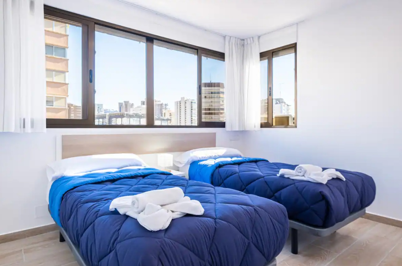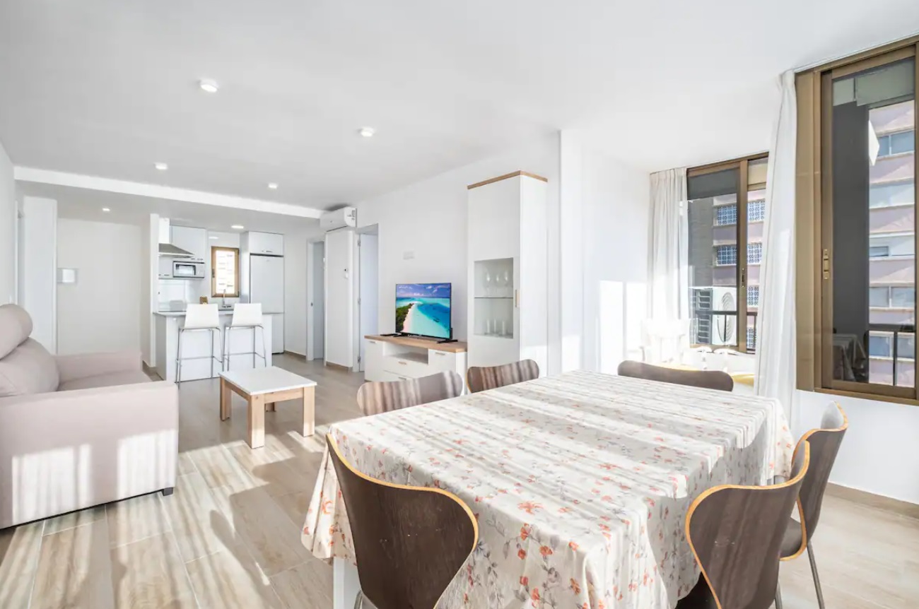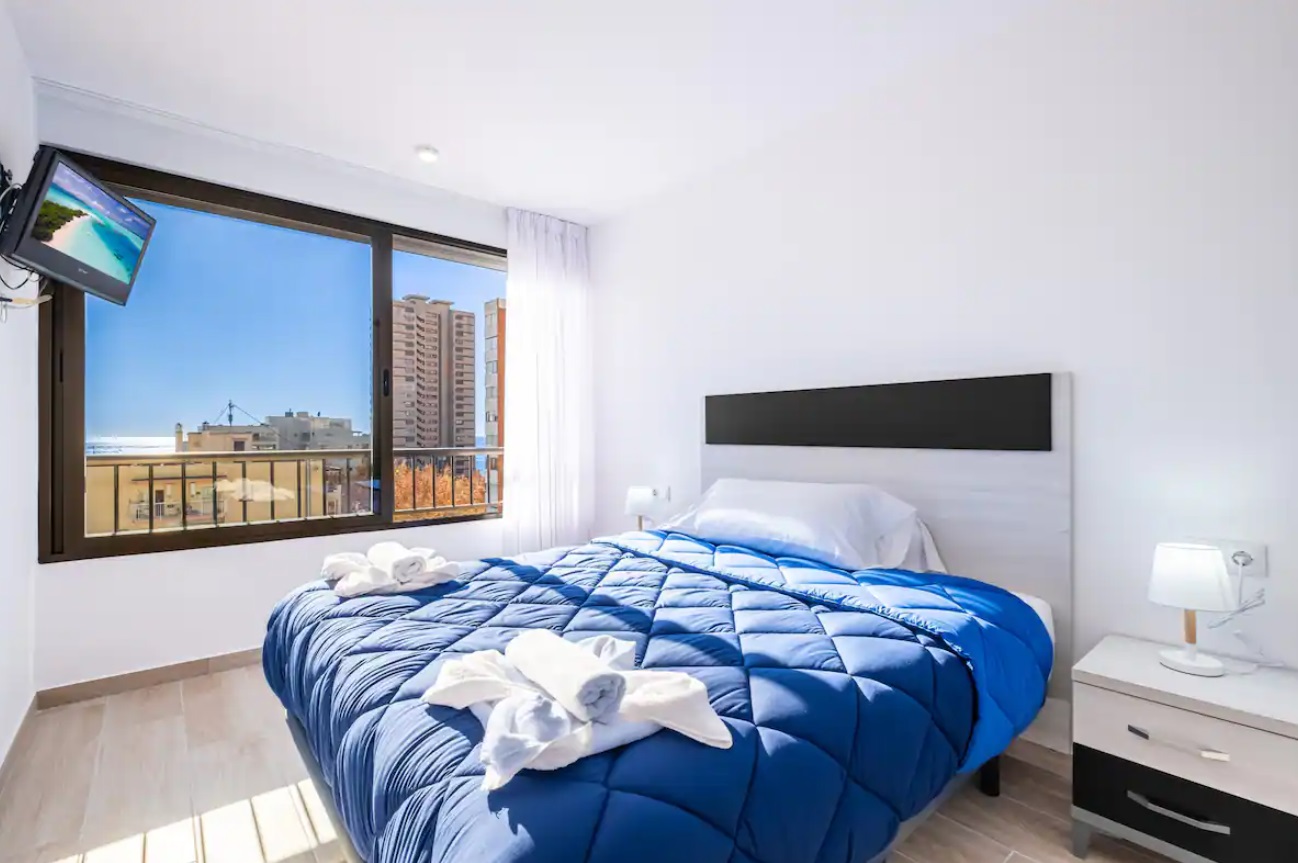 Apartamento reformado a escasos metros de la playa Levante y del casco antiguo de Benidorm. Posee 2 dormitorios, dos cuartos de baño con ducha (principal en suite) y capacidad para 6 personas.