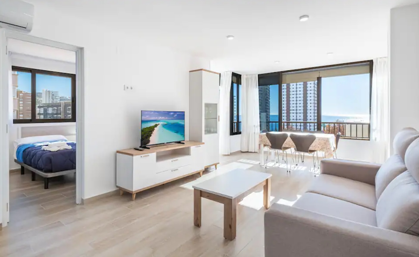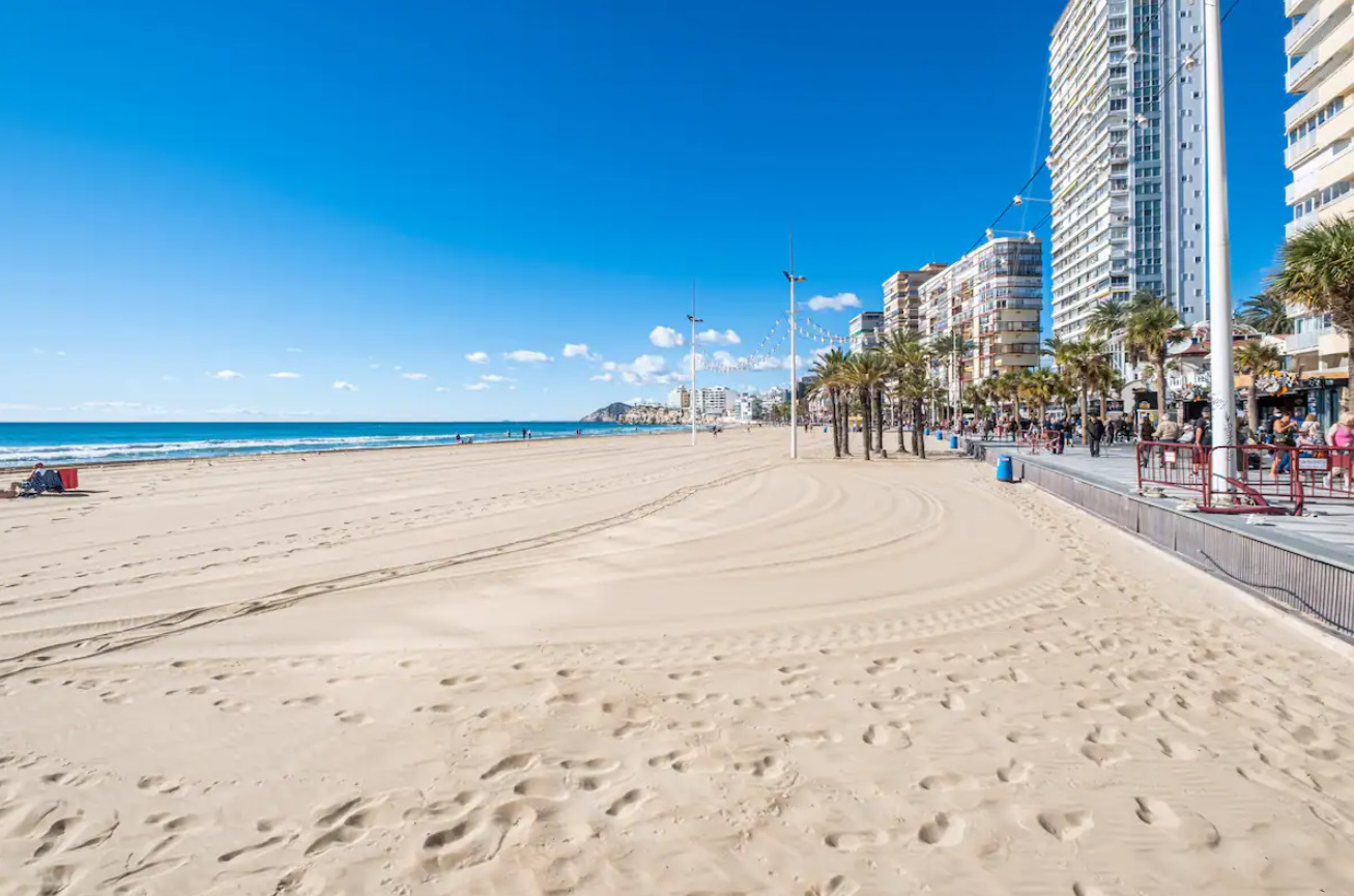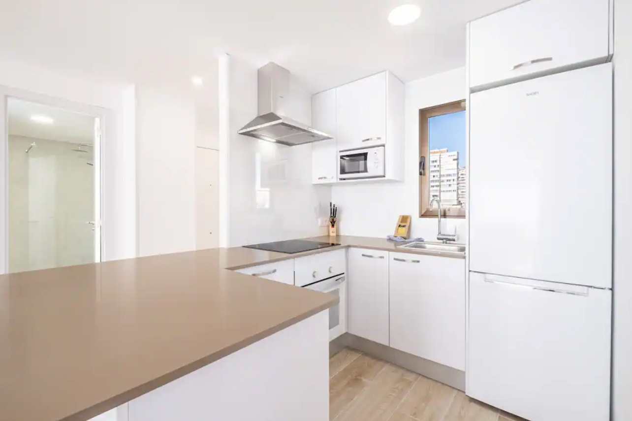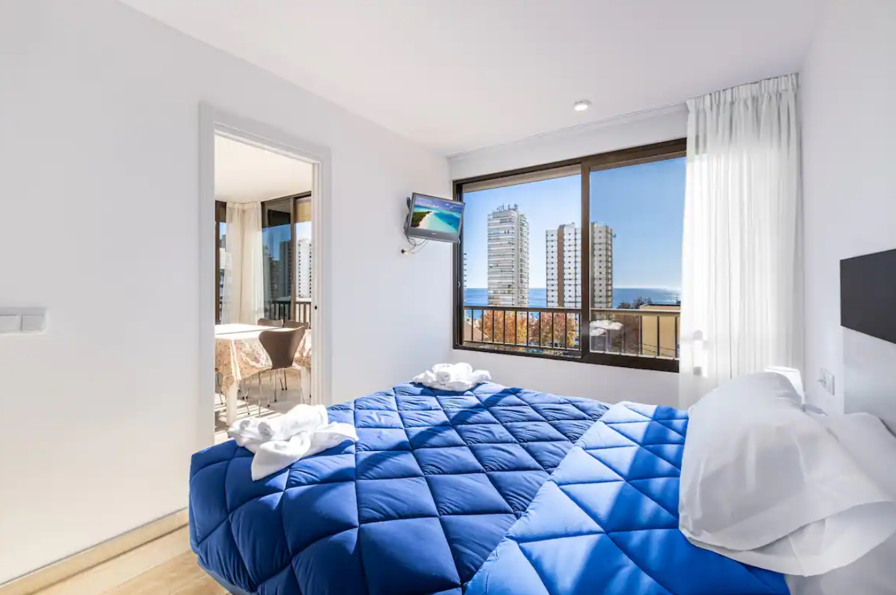 Apartamento reformado a escasos metros de la playa Levante y del casco antiguo de Benidorm. Posee 2 dormitorios, dos cuartos de baño con ducha (principal en suite) y capacidad para 6 personas.