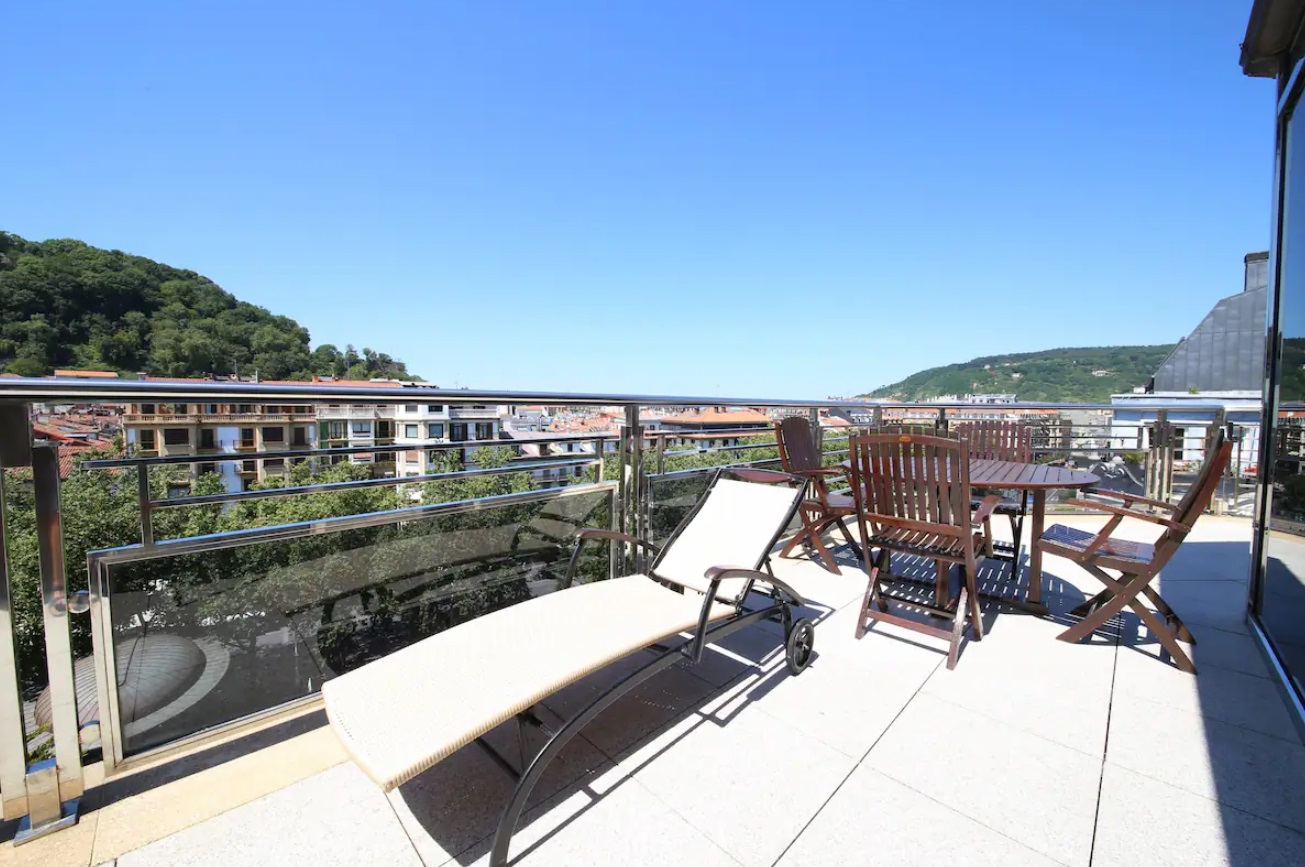 El apartamento hará de tu estancia algo inolvidable. Situado en un lugar inmejorable, frente a la parte vieja y la playa de La Concha, en pleno boulevard Donostiarra. No necesitarás ni un solo medio de transporte, todo está a mano. En la construcción del edificio se han utilizado materiales y equipamientos de 1era línea y está dotado de todo tipo de comodidades. Con una superficie de 80 m2, el apartamento está decorado con un estilo sobrio y minimalista en el que predominan los tonos claros. Está equipado con un cómodo mobiliario de diseño de primeras marcas. El salón es un luminoso y amplio, presidido por una impresionante terraza que rodea todo el apartamento y de donde se puede ver el mar, monte Urgull, parte vieja y Kursaal. La cocina está equipada con electrodomésticos de primeras marcas y perfectamente equipada con lavadora, lavavajillas, horno, microondas, hervidor de agua, cafetera, placa vitrocerámica, tostadora, platos, cubiertos, tazas, vasos, etc. La sala dispone de una TV de 42”. Hay dos habitaciones y dos cuartos de baño incorporados. Las habitaciones dan a la gran terraza. La habitación principal dispone de cama de matrimonio de 150 cms, la segunda habitación está equipada con dos camas individuales de 90 cms.
