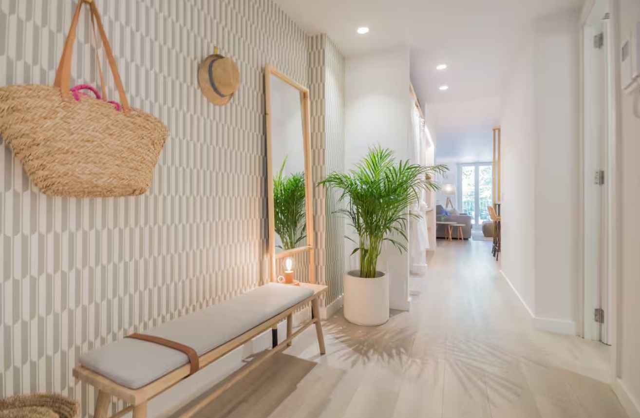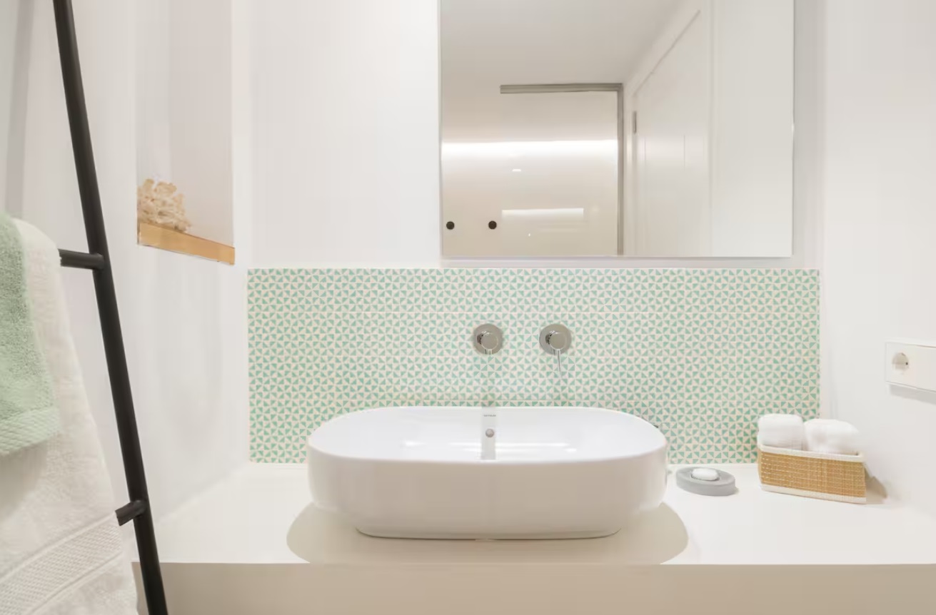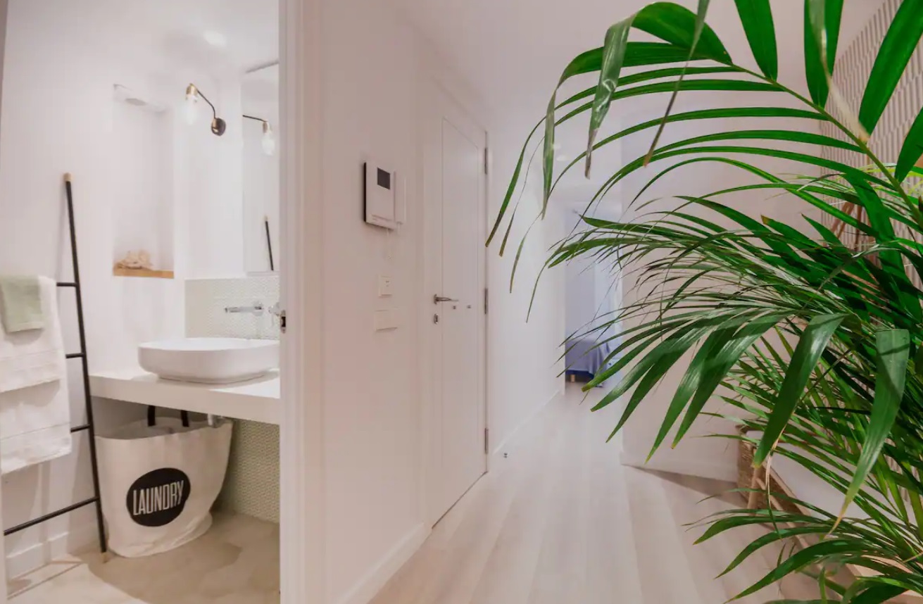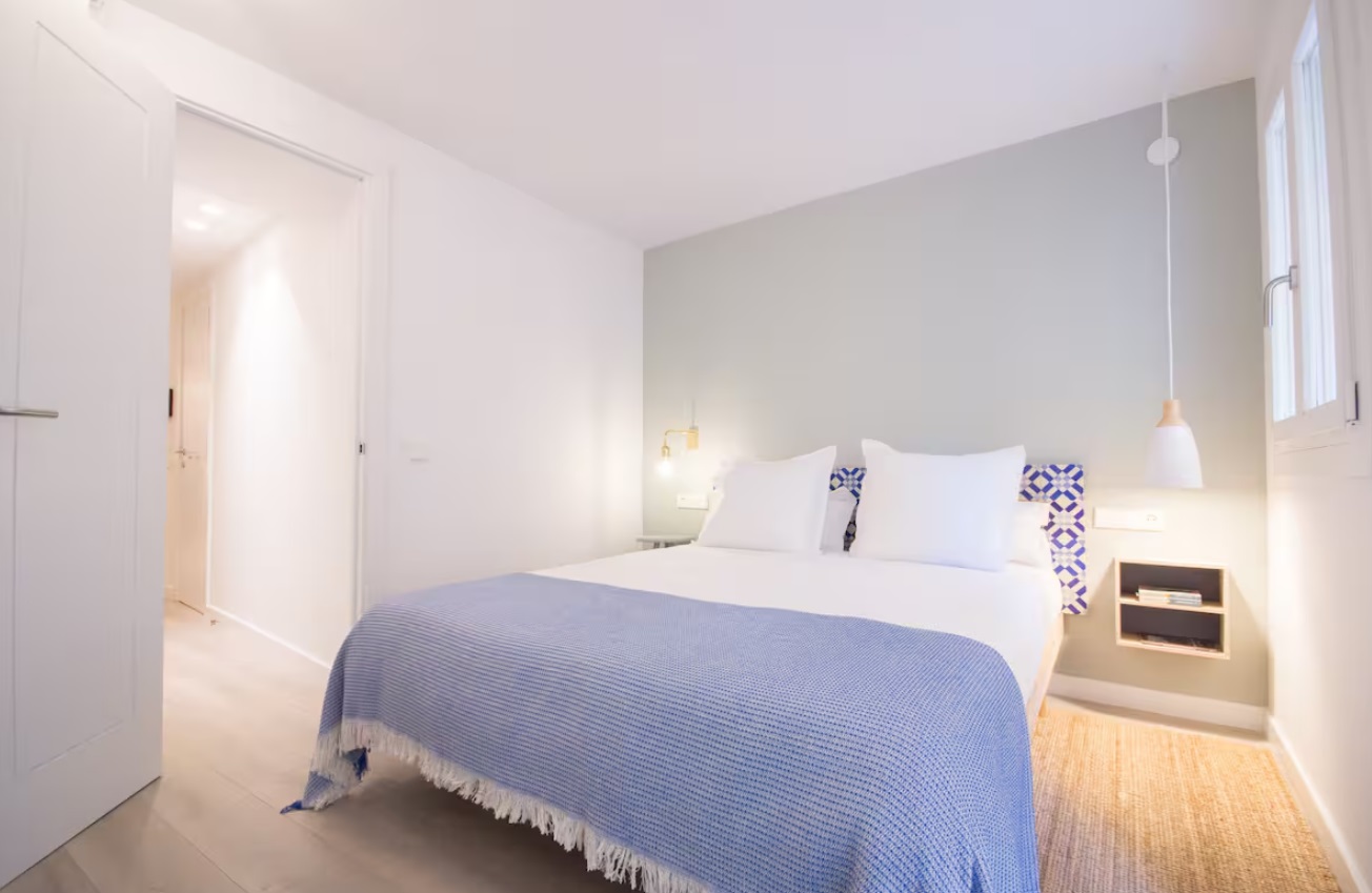 Frente al Palacio Real de Almudaina, se encuentra en la primera planta. El ascensor te permitirá entrar directamente, Este alojamiento tiene una elegante entrada que te lleva a la cocina de planta abierta. La cocina está totalmente equipada (lavadora-secadora, lavavajillas, tostadora, exprimidor, microondas, caldera, cafetera…) y está abierta al salón. También tiene una mesa alta y sillas. La sala de estar es luminosa y espaciosa. Tiene un pequeño balcón y ventana para disfrutar de las vistas. También hay una zona de lectura con una mecedora, un cómodo sofá cama de diseño italiano (160 cm x 200 cm). El apartamento se encuentra en el barrio de La Lonja. Uno de los más modernos de Palma.