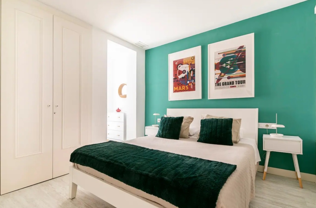 Dos dormitorios: un dormitorio principal con cama doble y baño completo en-suite.