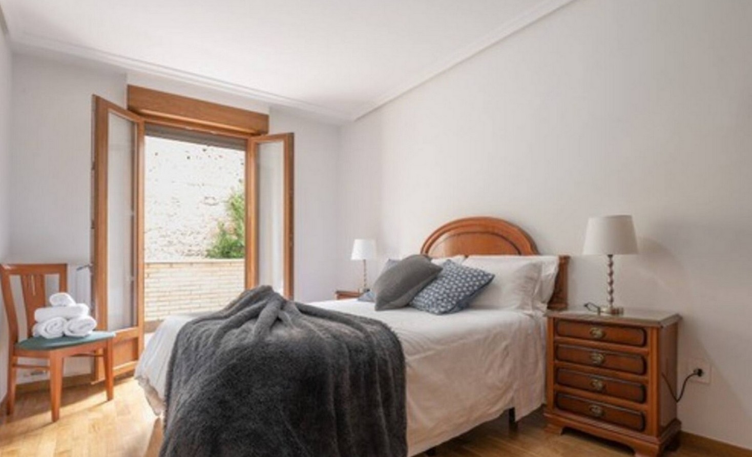 Apartamento muy cerca de la Plaza de España y el casco antiguo medieval de la ciudad. Amplio, luminoso y sin ruidos y con 2 baños totalmente equipados, 2 balcones al exterior y una terraza interior de 25 m2. Nuestro piso es muy amplio y esta reformado recientemente. Sus 4 habitaciones totalmente independientes, su amplio salón, sus miradores a la calle Rioja y su amplia terraza interior, hacen de nuestro apartamento un lugar ideal para pasar varios días en la ciudad con todas las comodidades. A 5 minutos andando hay una zona de parking gratuito y 2 Parkings de pago, uno situado en la Plaza Amárica y otro en el centro comercial Dendaraba.