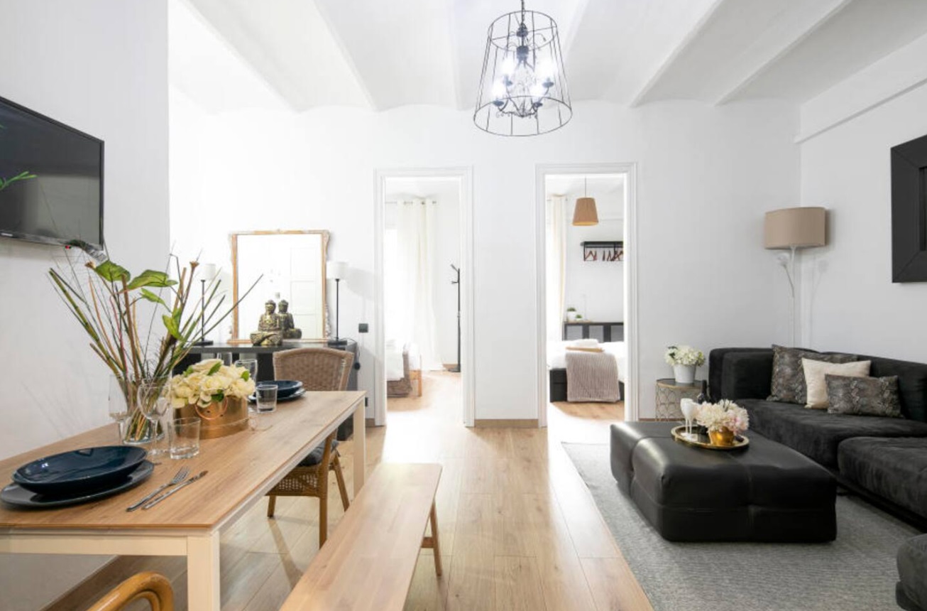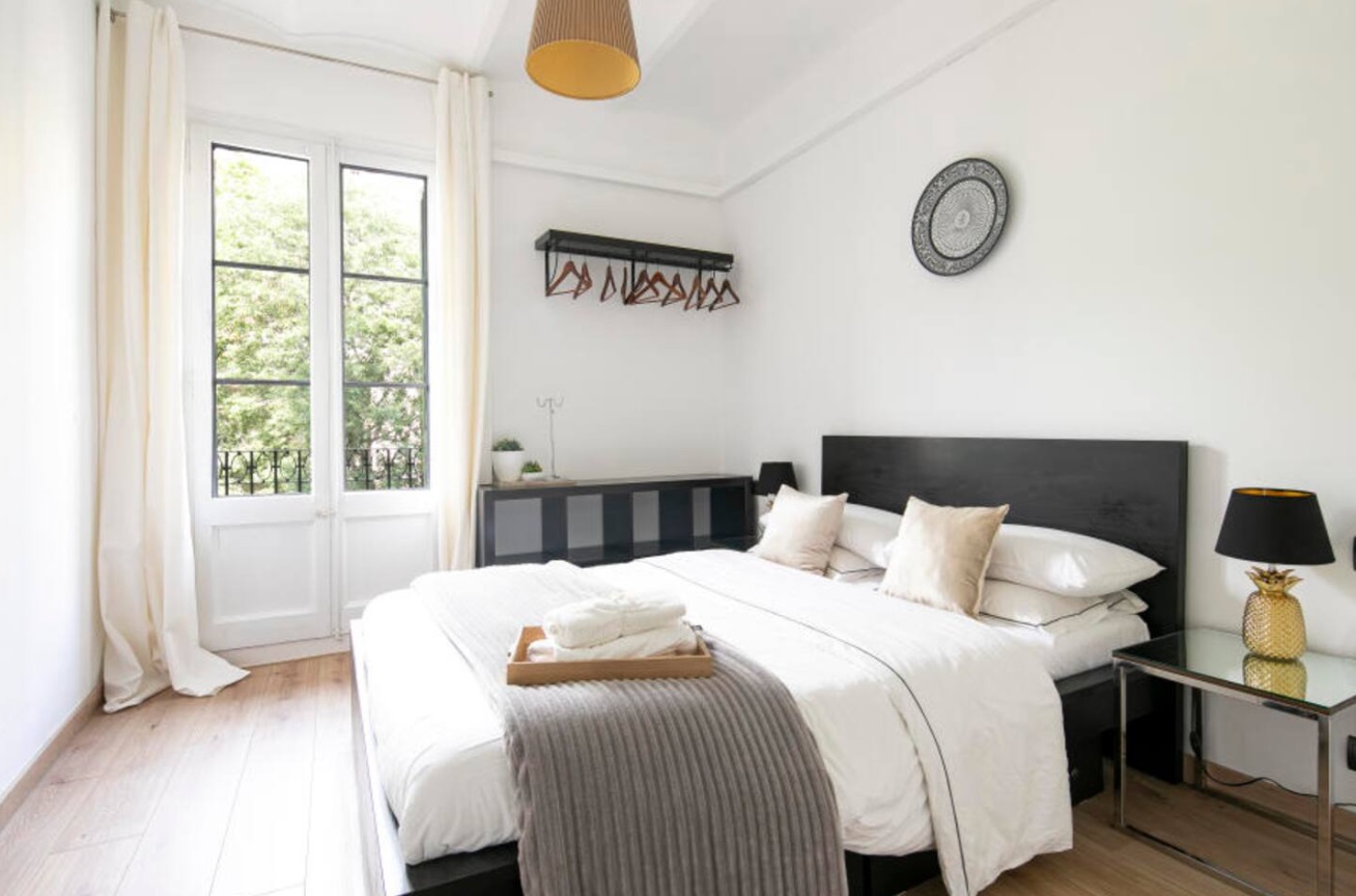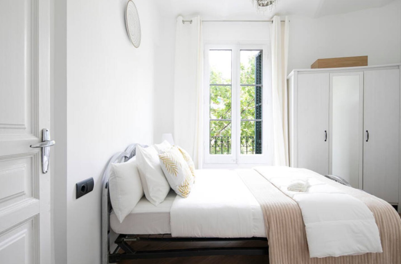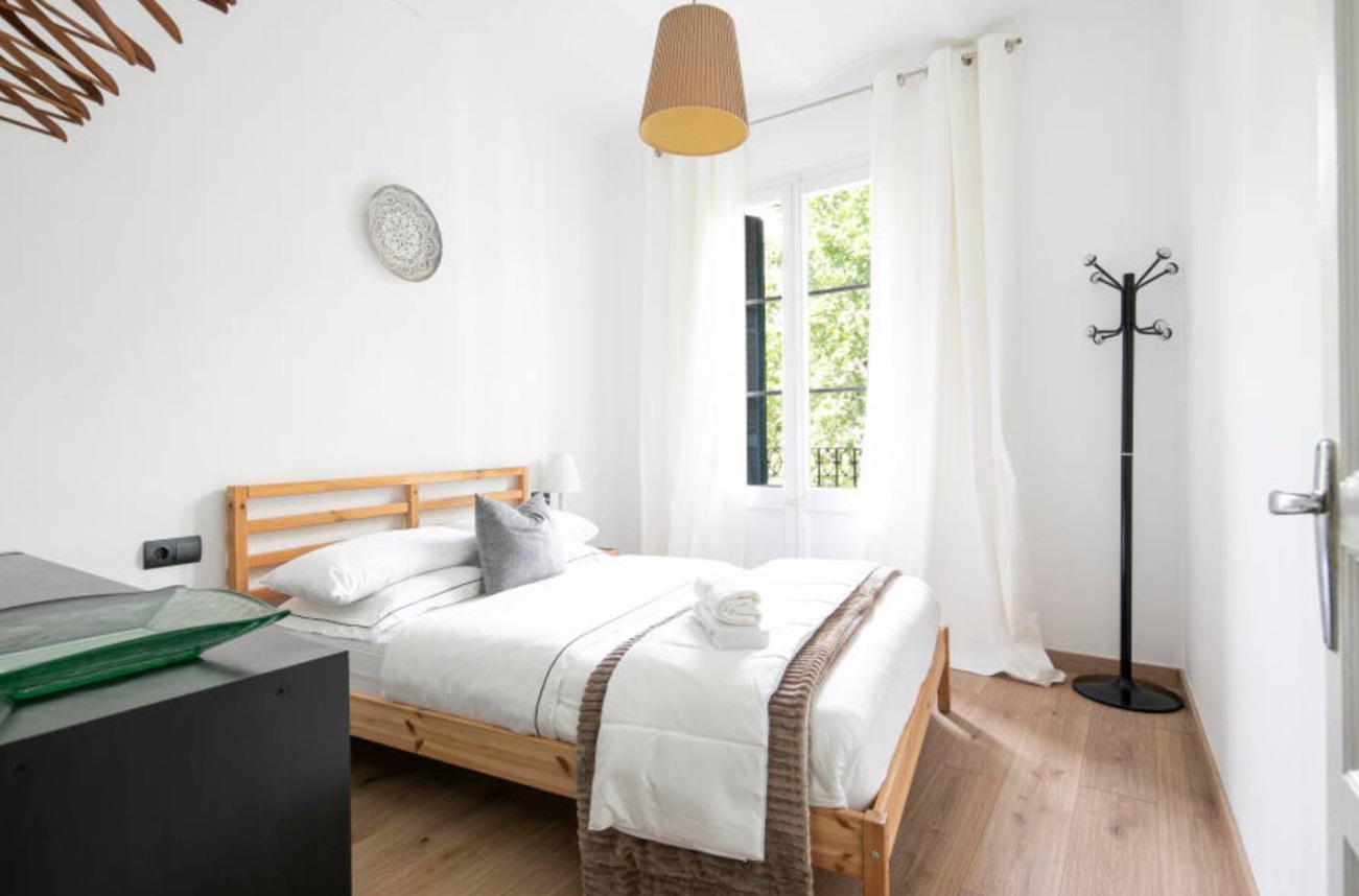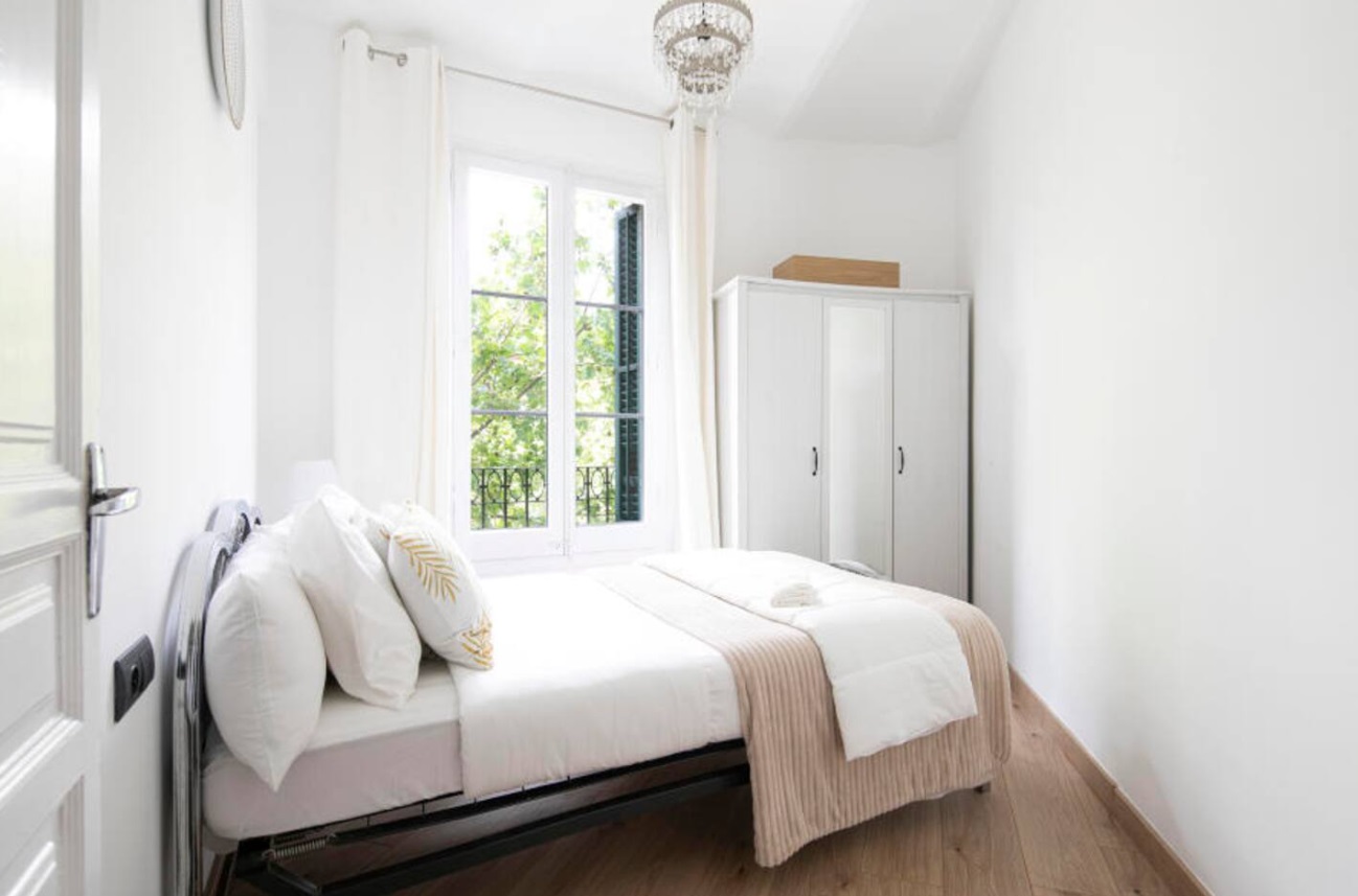 Este maravilloso apartamento de tres dormitorios está cerca de la Sagrada Familia, por lo que es perfecto para grupos pequeños, ya que puede acomodar hasta 5 personas. Te ofrece todas las comodidades necesarias para una estancia memorable en Barcelona, así como aire acondicionado en el salón para garantizar que tengas una estancia confortable aquí. También hay un balcón, donde se puede disfrutar de una puesta de sol o admirar las calles de abajo. En cuanto a cocinar tus comidas de inspiración española, tienes una cocina totalmente equipada, que se encuentra al lado del comedor. Este espacio es luminoso, debido a que goza de mucha luz natural. La cocina ofrece horno, tostadora y hervidor de agua, entre otros equipamentos. Hay tres habitaciones dobles en el apartamento, que tienen la misma decoración acogedora y elegante que el resto del apartamento. Son muy luminosas y tienen mucho espacio para almacenar tus pertenencias. Además de esto, el baño grande y reformado crea un espacio limpio y privado para que lo utilizen todos los invitados.
