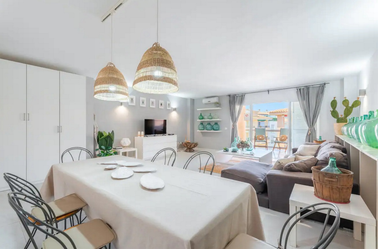 Situado en la Colonia de Sant Jordi. La propiedad de 140 m² consta de una sala de estar, una cocina totalmente equipada con lavavajillas, 3 dormitorios y 2 baños, por lo que puede acomodar a 6 personas. Los servicios adicionales incluyen Wi-Fi de alta velocidad, aire acondicionado, un ventilador, calefacción, una lavadora, una televisión, así como libros y juguetes para niños.El apartamento vacacional también tiene un balcón privado, perfecto para relajarte por la noche.