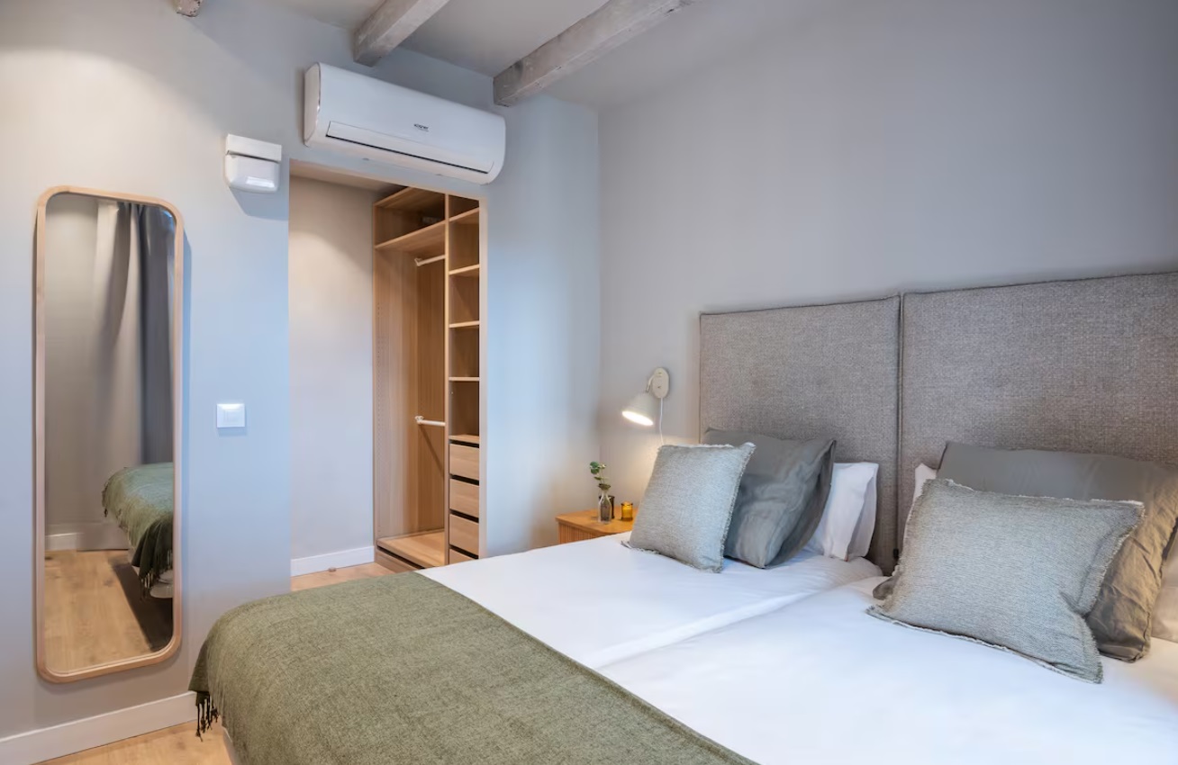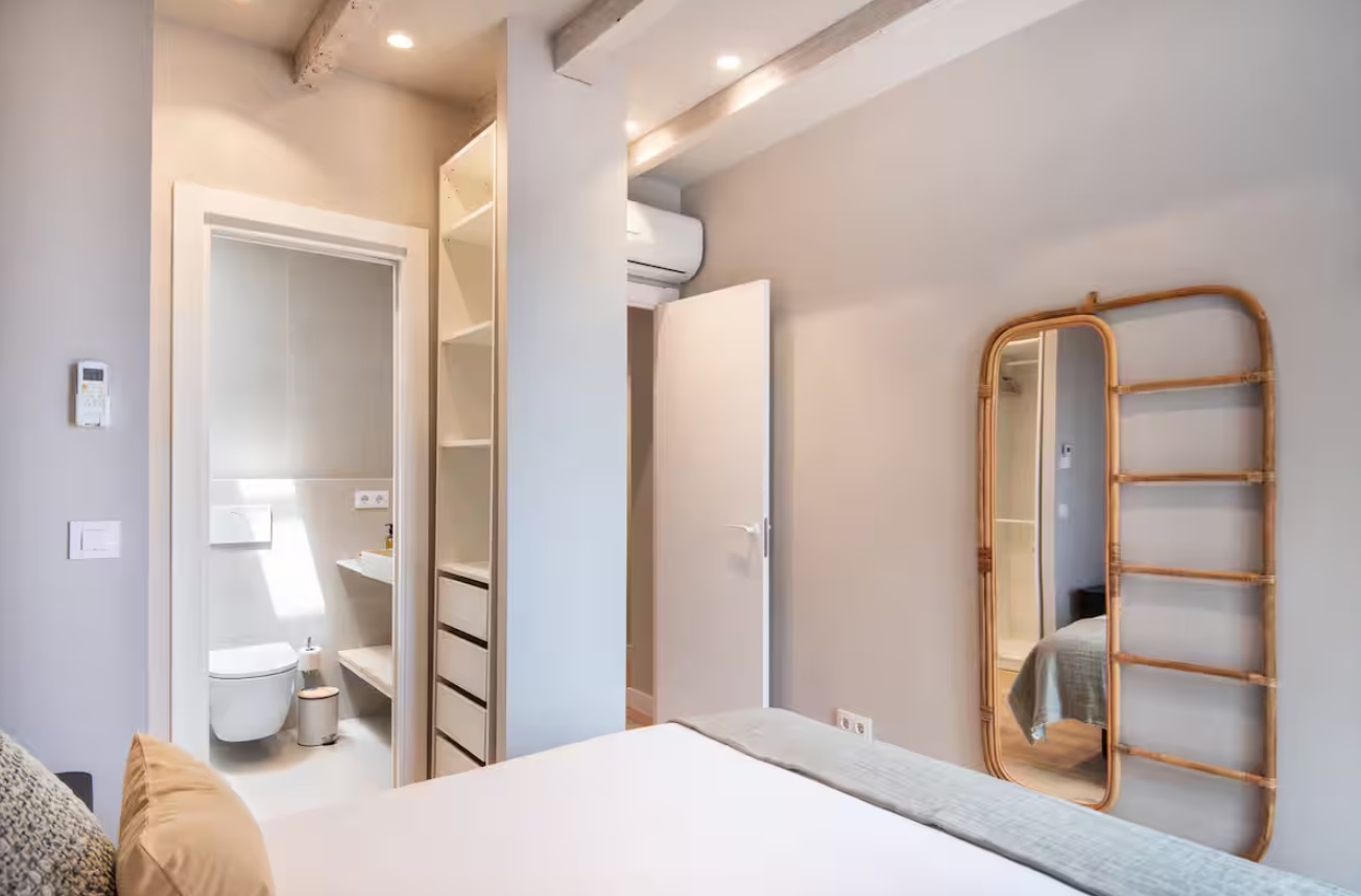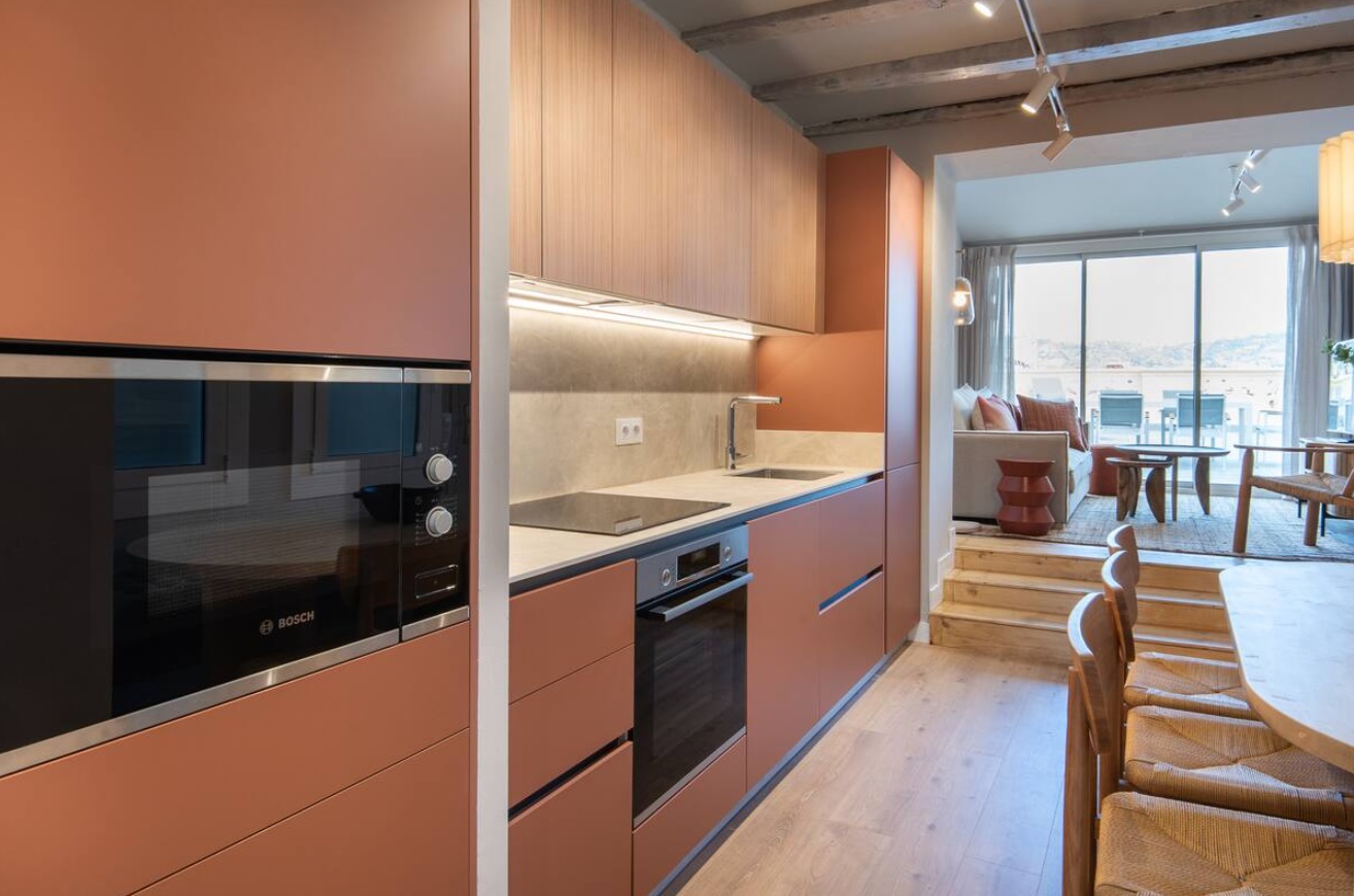 No tengas dudas que recordarás este hogar como uno de los mejores que has estado. En este ático recien reformado, con una espectácular terraza y vistas soñadas, disfrutarás cada momento de tu estancia. Cada detalle ha sido pensado para el bienestar de los huéspedes, con un moderno diseño, excelente climatización y todas las comodidades que te mereces en una ubicación privilegiada. El apartamento cuenta con tres dormitorios, el primero de ellos con cama Queen Size y baño en suite, otro dormitorio con dos camas individuales juntas que componen una gran cama de 180cm y el restante con dos camas individuales. Todos los dormitorios tienen bomba de frio calor. Desde el salón, con un cómodo sofá, Smart TV y un potente AC, se accede a la espéctacular terraza con preciosas vistas y los mejores atardeceres que los invitará a disfrutar el cálido clima de Barcelona. Hacia el otro lado del salón se encuentra una moderna cocina integrada y completamente equipada, una zona de comedor y un segundo baño completo para total cómodidad de los huéspedes. El apartamento está totalmente equipado, con recursos optimizados para una mayor sostenibilidad y con tecnología aplicada al bienestar, controladores inteligentes de temperatura para una óptima climatización durante toda la estancia, Wifi de alta velocidad, Smart TV, toallas, ropa de cama, champú, acondicionador, gel de ducha, 4 bombas de frio-calor, lavadora, lavaplatos, plancha, y una amplia variedad de utensilios para cocinar.