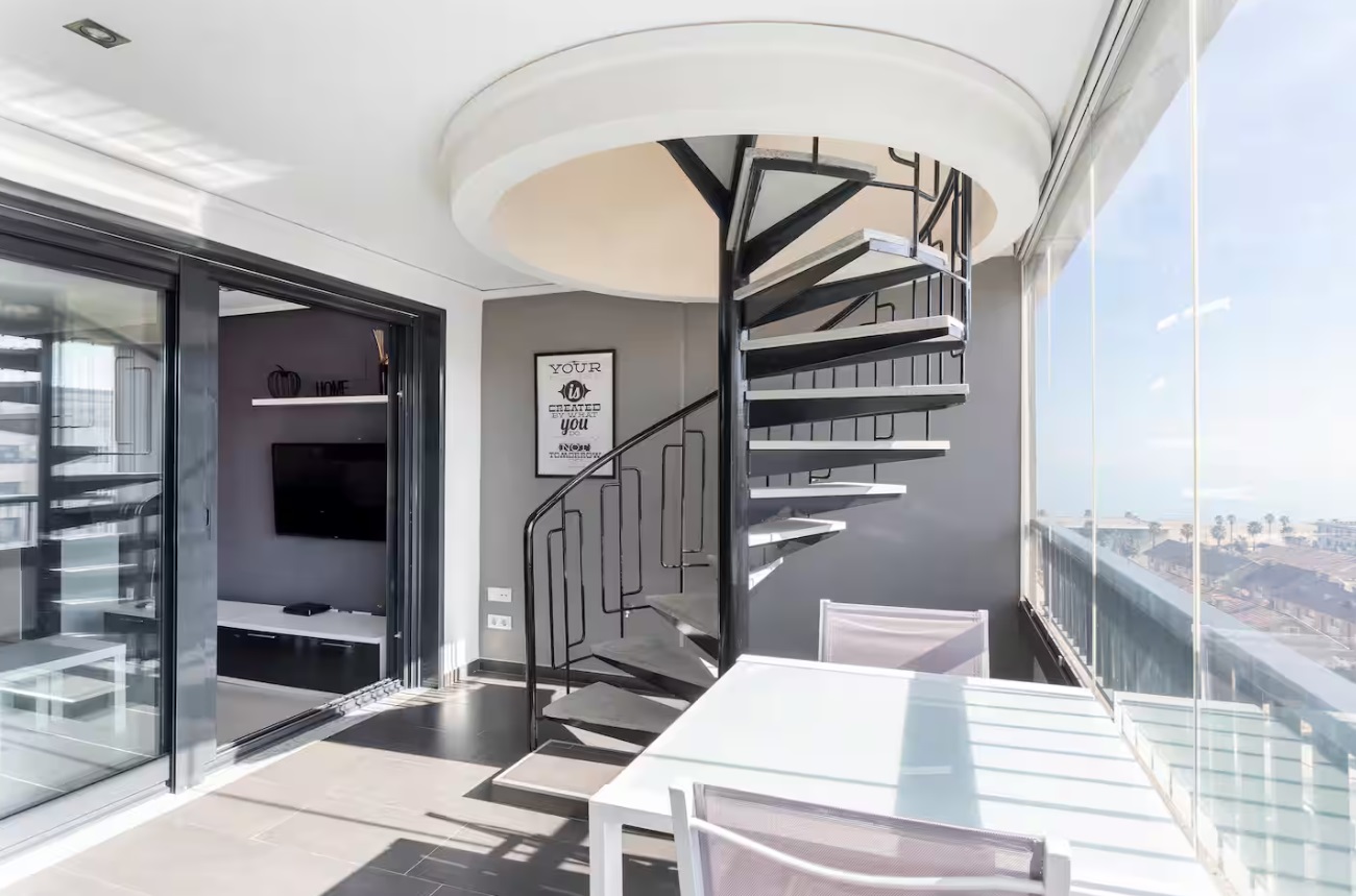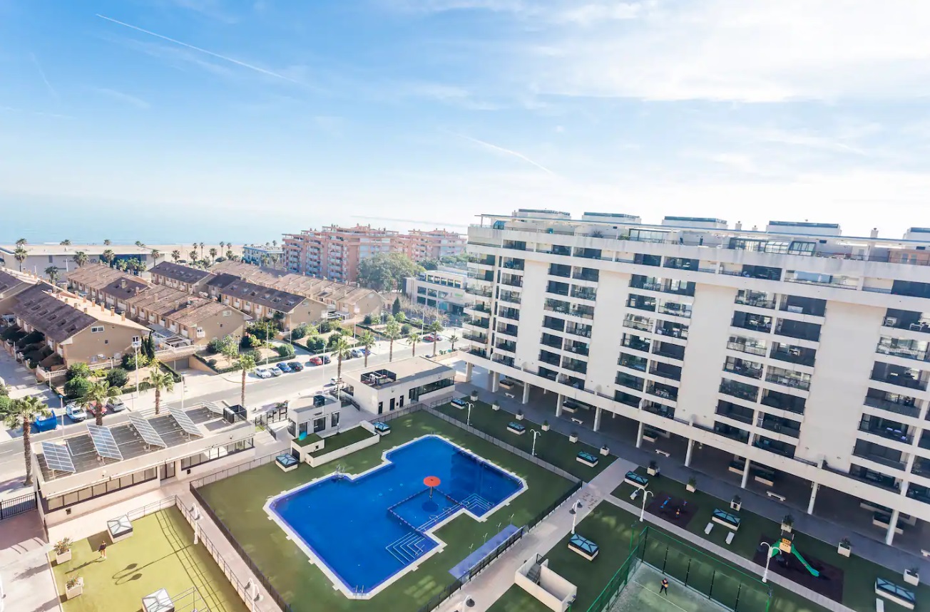 Es espacioso, cómodo y muy luminoso. También hay una parada de autobús para el centro justo al lado. Mercado y farmacia próximo. El complejo incluye conserjería 24 horas, plaza de garaje, piscina para adultos y niños, pistas de pádel y parque infantil. Cuenta con secador de pelo, lavavajillas, cafetera y otros electrodomésticos para su comodidad. Apartamento acogedor con un dormitorio con cama doble y otro con dos camas individuales. Incluye ropa de cama completa y toallas de baño, rostro y playa. La cocina está totalmente equipada con ollas, cubiertos, microondas, lavavajillas, mixer, tostadora y cafetera Nespresso. El apartamento cuenta con aire acondicionado central (frío y calor) y Smart TV con Netflix. En la planta inferior hay un espacio exterior con mesa y silla. En la planta superior, una terraza exclusiva con tumbonas, mesa, parrilla y una vista espectacular.