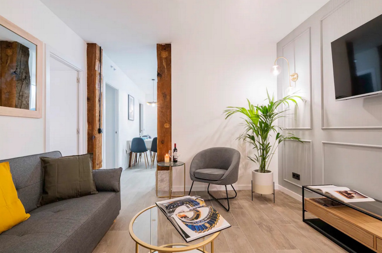 Este alojamiento tiene una ubicación estratégica e ideal para conocer la ciudad sin necesidad de transporte. Magnifico y exclusivo apartamento recién reformado. Cuenta con 2 dormitorios para dos personas, un cómodo salón con sofá cama, Smart TV, mesa de comedor, cuenta con una cocina abierta muy bien equipada, con todo lo necesario para cocinar durante su estancia, lavavajillas, horno, microondas, cafetera Nespresso, lavadora/secadora. Baño completo.