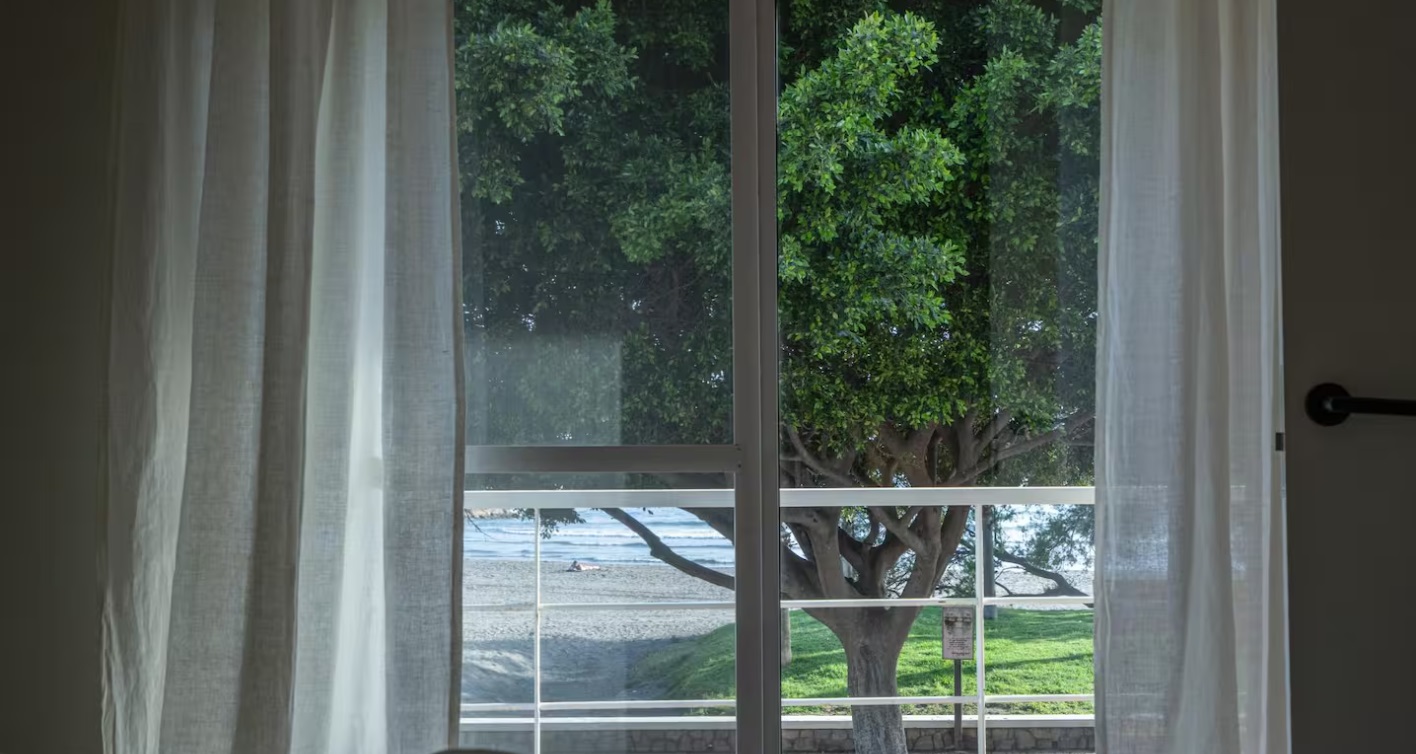 Habitación principal con cama de 150X200 cm, colchón alta calidad de viscolàstica, grandes ventanales frente a la playa, a/a y balcón.