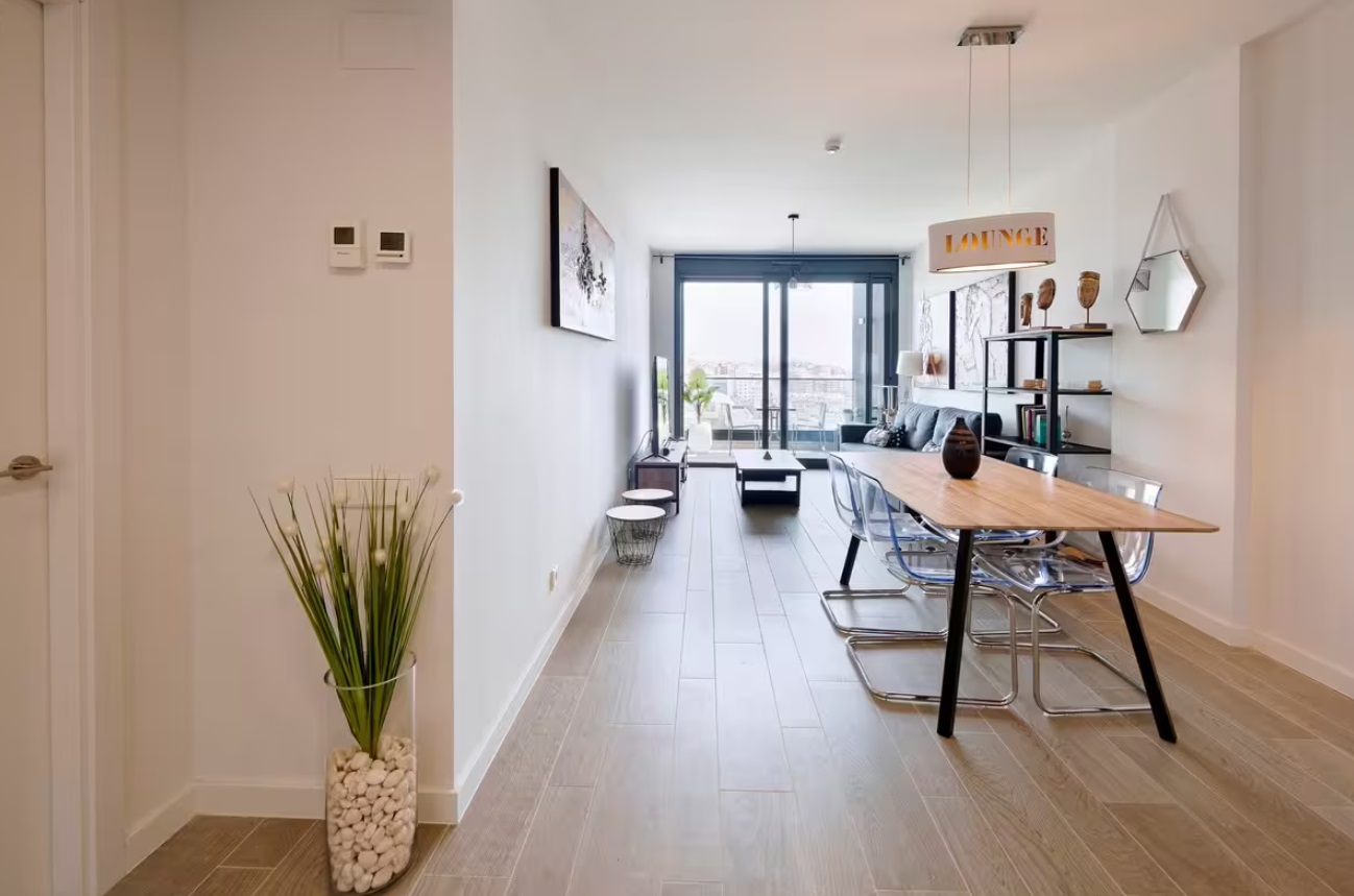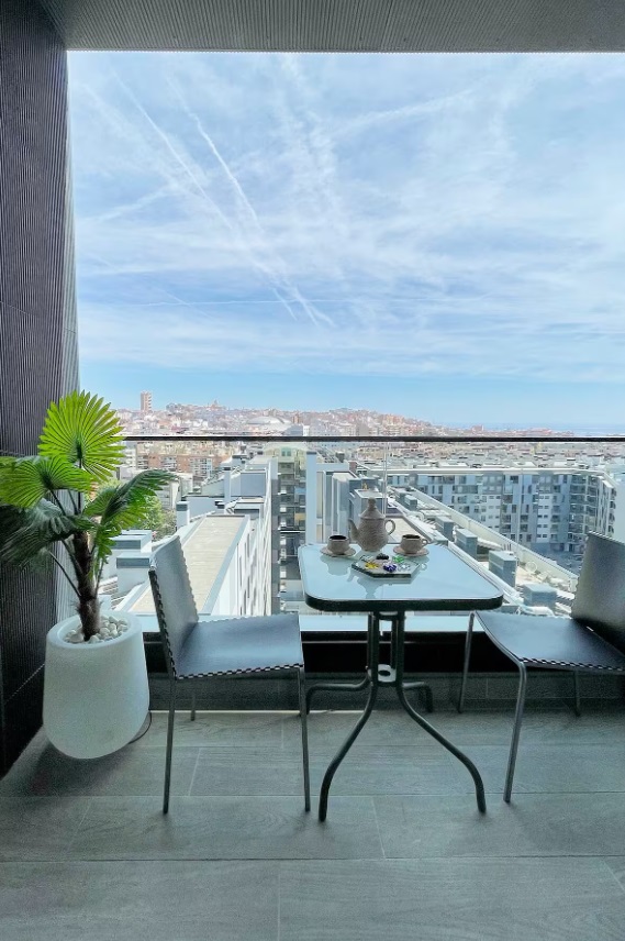 En un edificio de 19 plantas en Tarragona. Goza de piscinas comunitarias, parking privado y una impresionante vista desde tu terraza. Cocina y salón totalmente equipados, con wi-fi de alta velocidad, aire acondicionado y suelo radiante. Lavadora, lavavajillas y electrodomésticos modernos a tu disposición. Descansa en una cama de matrimonio o en las 2 camas individuales. Espacios diseñados para tu confort.