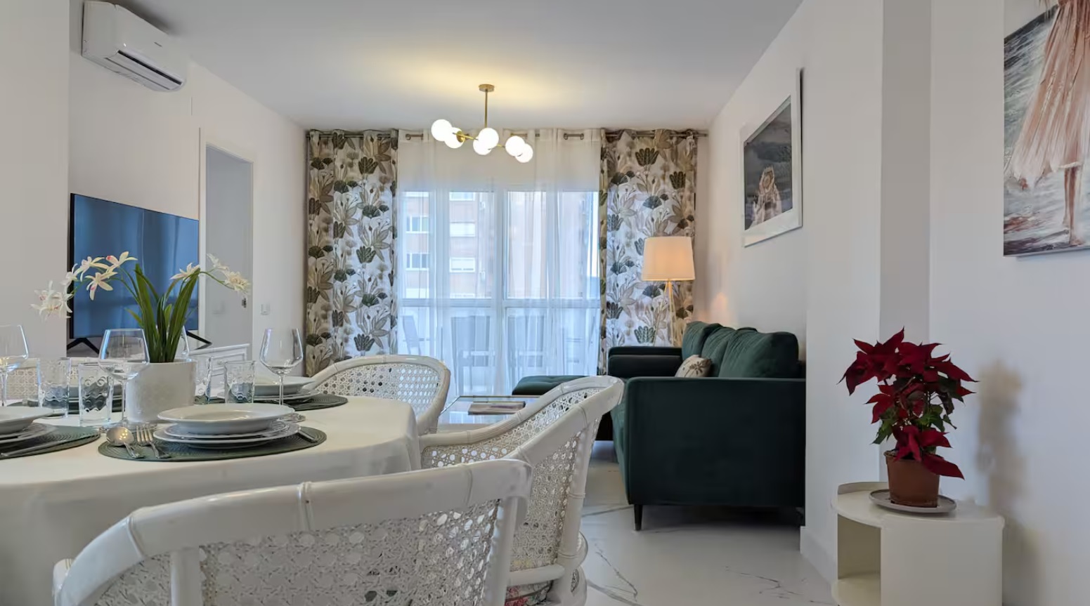 Con un salón que irradia luminosidad, su decoración moderna y elegante ha sido cuidadosamente seleccionada para ofrecer un ambiente acogedor y relajante. Cada detalle ha sido pensado para hacer que te sientas como en tu propio hogar. Disfruta de la vista desde la coqueta terraza, donde podrás contemplar tanto el cautivador skyline de la ciudad como de la infinidad del mar. Nada como disfrutar de un café mientras el sol despide su primer destello en el amanecer. La cocina, completamente equipada, es un paraíso para los amantes de la gastronomía. Prepara delicias culinarias para tus seres queridos y crea recuerdos inolvidables en este espacio diseñado para la excelencia. Cada rincón de este apartamento ha sido decorado con mimo, con el objetivo de proporcionar una experiencia única y acogedora. La urbanización no solo ofrece la comodidad de un parking privado, sino que también invita a sumergirse en la frescura de su piscina, convirtiendo tu estancia en una experiencia completa de bienestar. Además, su ubicación estratégica te coloca a pocos minutos de la playa y cercano a todos los servicios que puedas necesitar, garantizando que tu tiempo aquí sea tan conveniente como placentero.