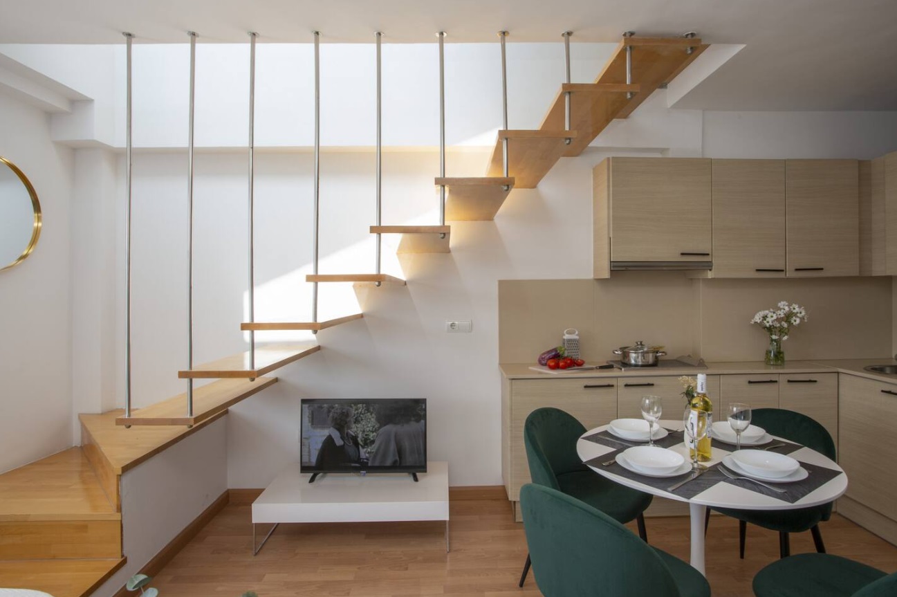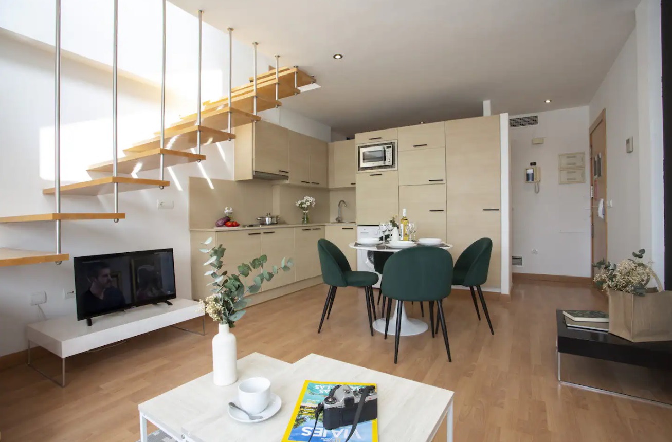 En la planta inferior, encontrarás un estudio acogedor con cama doble de 150 cm en su zona de dormitorio, separada parcialmente del salón por una pared que aporta una agradable sensación de intimidad y un baño en suite con ducha, y cuenta con un confortable sofá cama doble. La planta superior una terraza privada soleada perfecta para desconectar. Ático dúplex interior con encanto y muy luminoso. Hermosa y espaciosa terraza idónea para relajarse. Zona de descanso dos camas dobles matrimoniales y un hermoso comedor que incluye sofá cama doble para huéspedes adicionales. Dos baños completos con ducha. Cocina integrada con lavavajillas, lavadora, microondas, nevera y utensilios esenciales. Equipado con aire acondicionado, ropa de cama, toallas, secador de pelo y plancha.