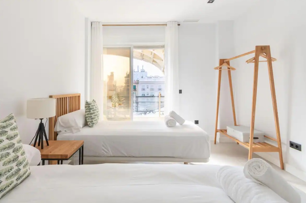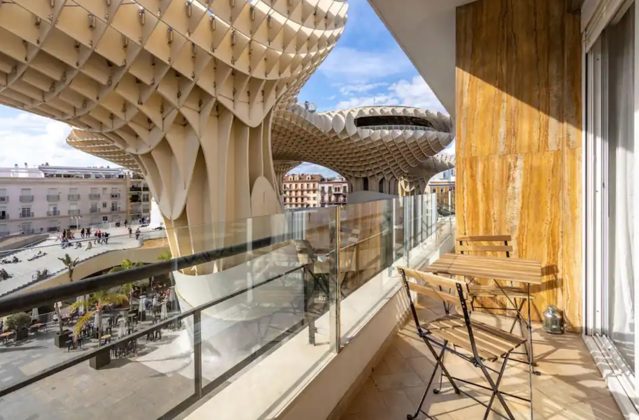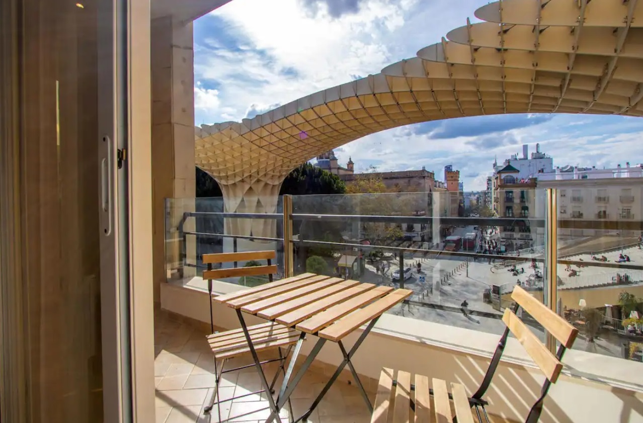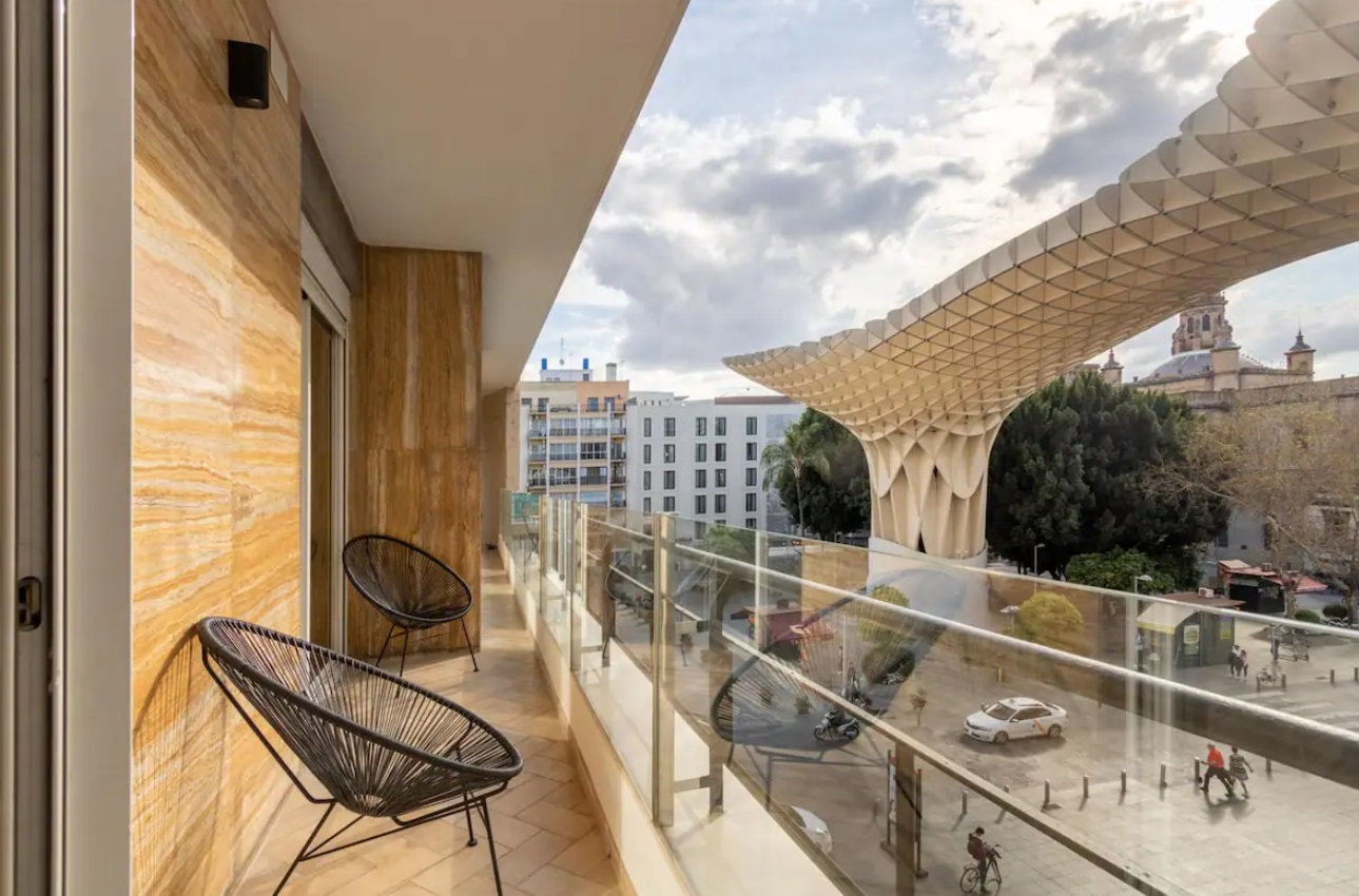 Cada uno de los dormitorios, así como el salón, dispone de acceso a impresionante terraza privada con espectaculares vistas desde las que casi se tocan las impactantes Setas.