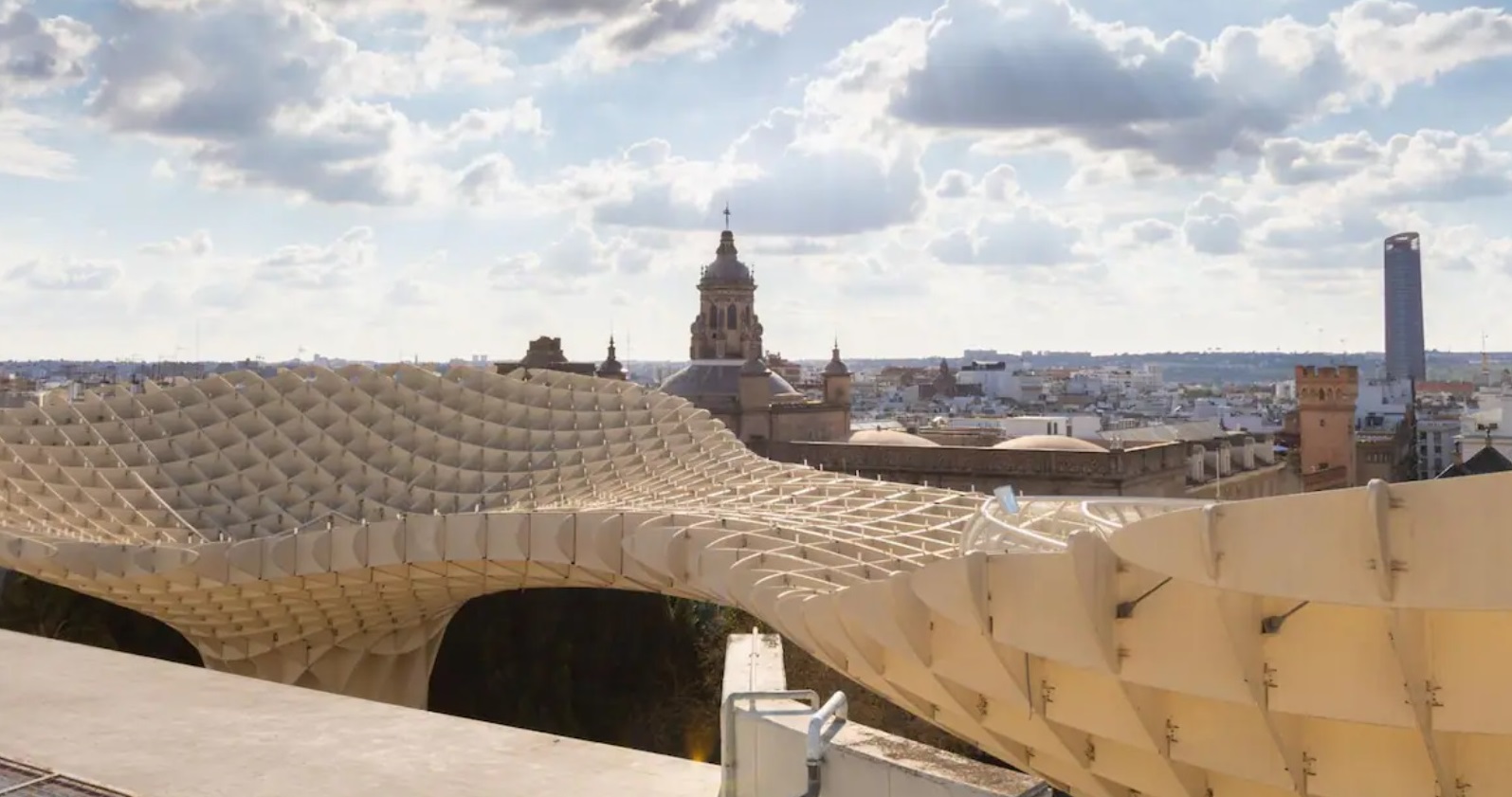 El apartamento se encuentra frente a las Setas (Metropol Parasol): una impactante estructura de madera ubicada en la Plaza de la Encarnación, en el casco antiguo de Sevilla. Alberga un museo, un mercado de agricultores, una plaza elevada y varios bares y restaurantes, la mayoría de ellos al aire libre.