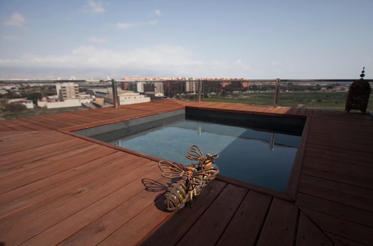 Espectacular ático con 100 metros de terraza propia, decorada con mucho encanto que incluye una pequeña piscina.
