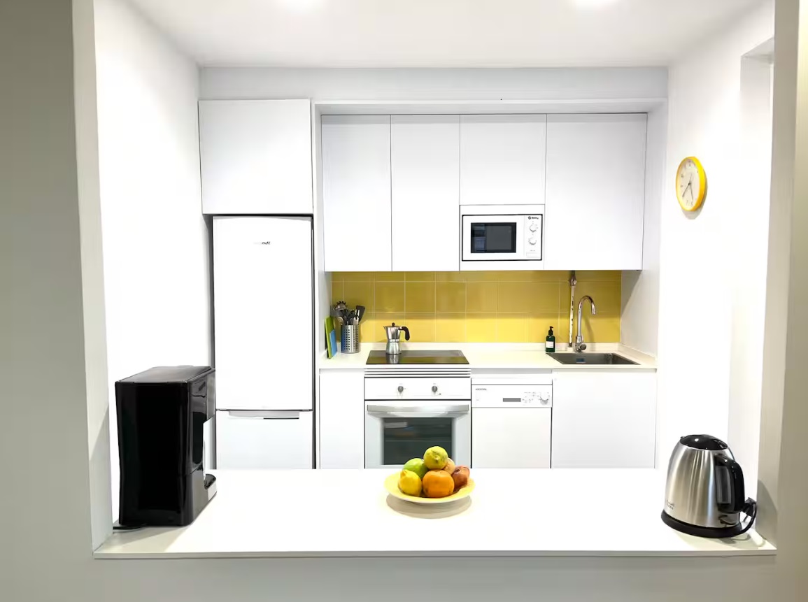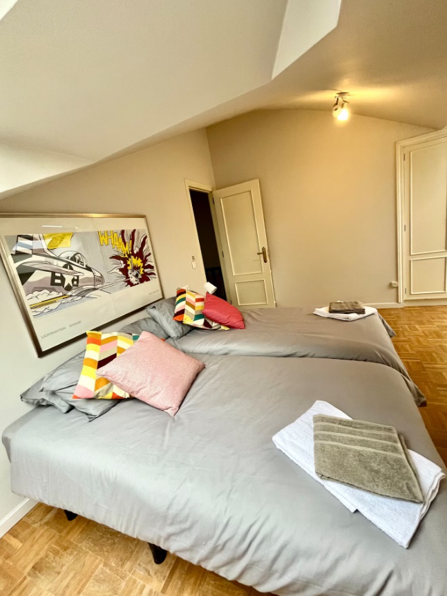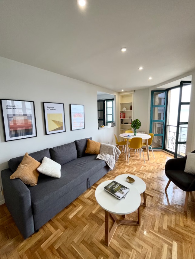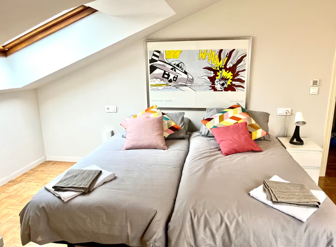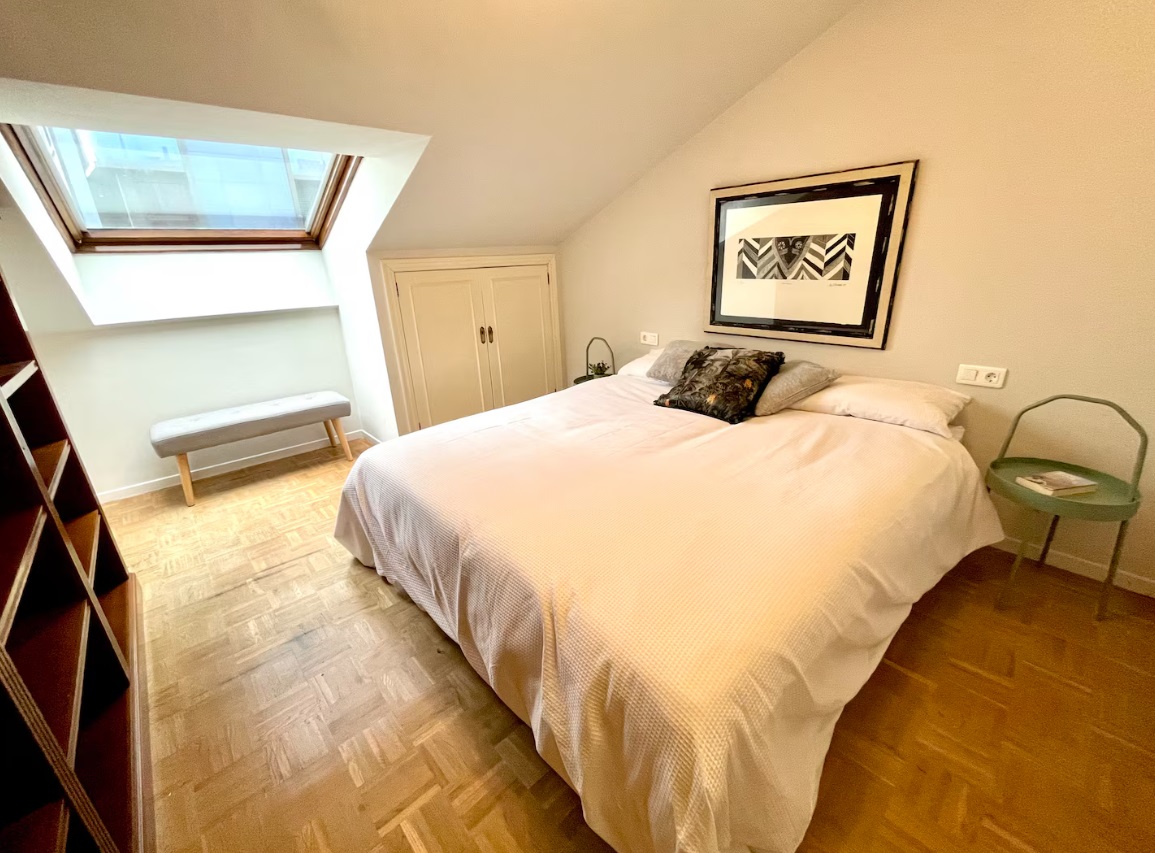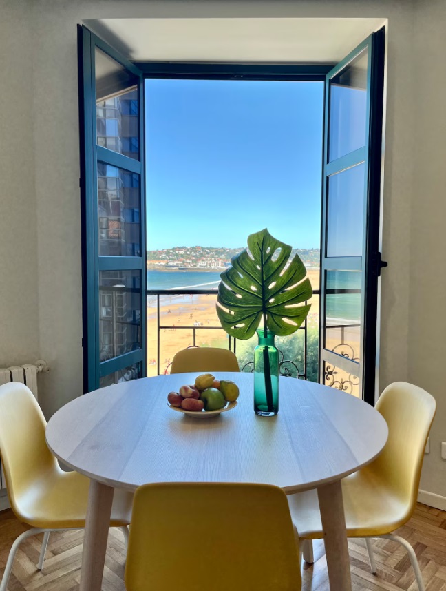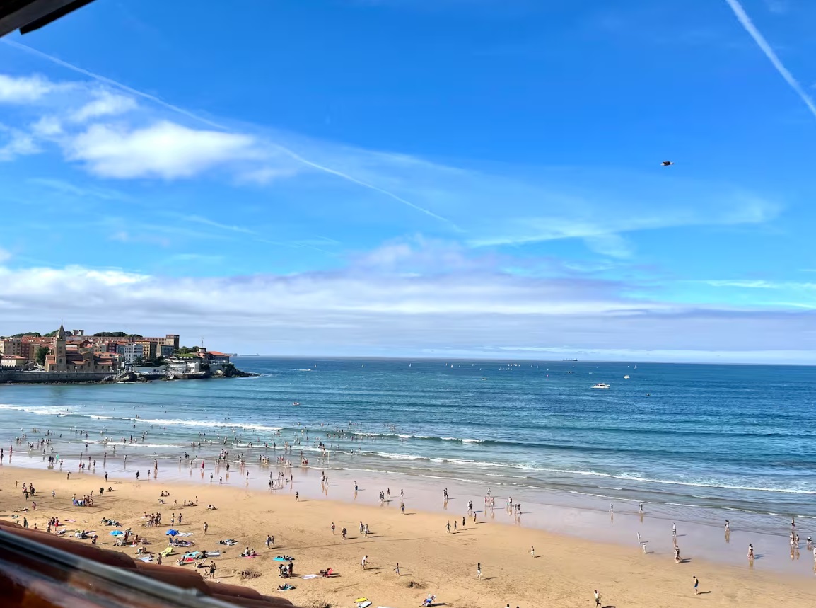 Ubicado en la última planta de un edifico histórico con ascensor y situado en pleno centro de Gijón. La vivienda está totalmente equipada y goza de grandes ventanales con vistas privilegiadas para que tengas siempre a la vista el mar, ya sea mientras disfrutas del desayuno o mientras te relajas leyendo en el sofá. ldeal para viajeros, parejas, familias y viajes de negocios. La vivienda, de unos 120 metros cuadrados, está distribuida en dos plantas, la inferior con una cocina completamente equipada comunicada con un amplio salón-comedor y una planta superior, con dos luminosos dormitorios. Uno de ellos con cama de 150 y otro con dos camas de 90. Al ser habitaciones abuhardilladas, además de ser muy luminosas, su altura y ubicación junto al mar aísla de cualquier tipo de ruido urbano. El único sonido que oirás desde tu cama será el de las olas del mar rompiendo en la playa. Cada dormitorio tiene un baño completo propio, uno con bañera y otro con una gran ducha con efecto lluvia. La vivienda dispone además del sofá cama de 120 para un quinto invitado.