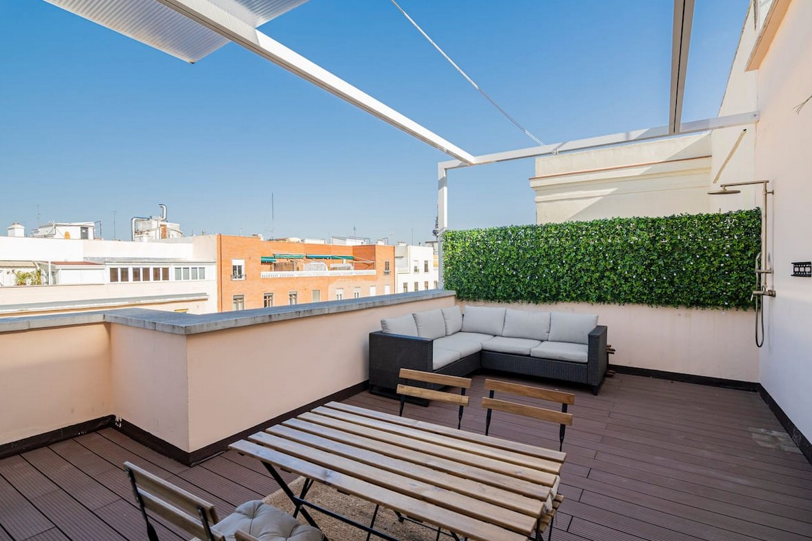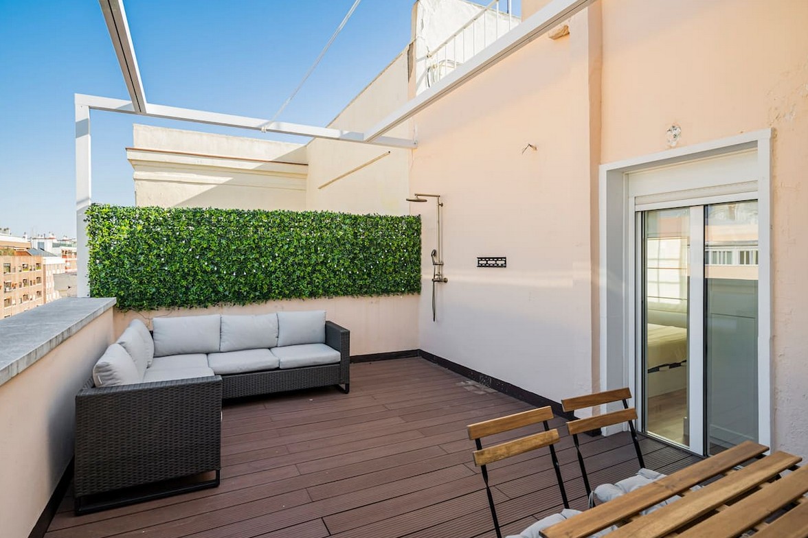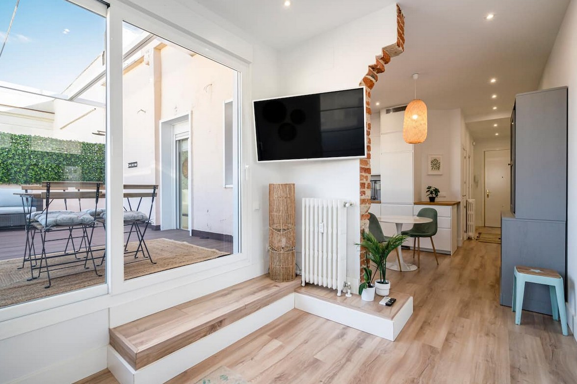 Idealmente situado en el barrio de Salamanca, Madrid. ¡Tendrás una espectacular terraza a tu disposición! Totalmente equipado y perfectamente ubicado cerca de bares y restaurantes