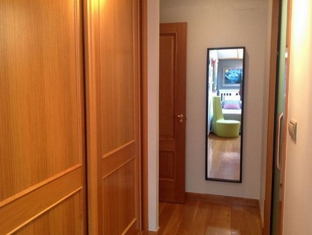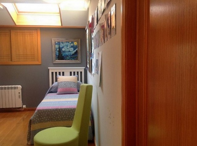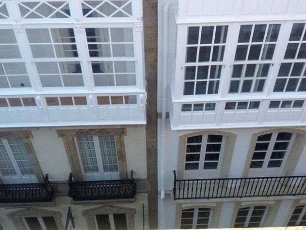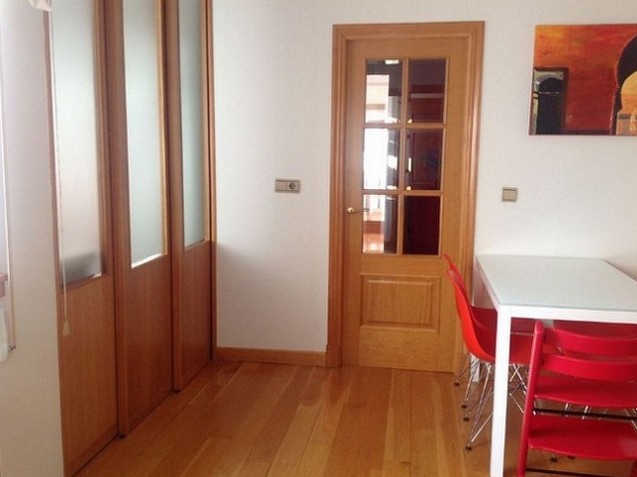 Al entrar en la vivienda tenemos un hall que distribuye a un gran salón, con balcón, con vistas al puerto de La Coruña. Desde ahí accedemos también al office, un espacio con mucha luz ambivalente como zona de estar, zona estudio y comedor. Desde aquí se accede a la cocina separada por un tabique móvil que permite dar independencia a la zona office o integrarla para así generar un espacio amplio y una buena comunicación entre ambos espacios.La vivienda está compuesta por dos dormitorios con su cuarto de baño correspondiente integrado. El dormitorio principal es un gran dormitorio con zona de estar y un pequeño balcón a la calle real, dispone además de luz cenital a través de una velux, al igual que el otro dormitorio.Dispone de mucha luz, en general.Destaca la amplitud de armarios empotrados.