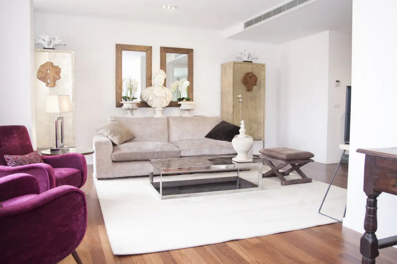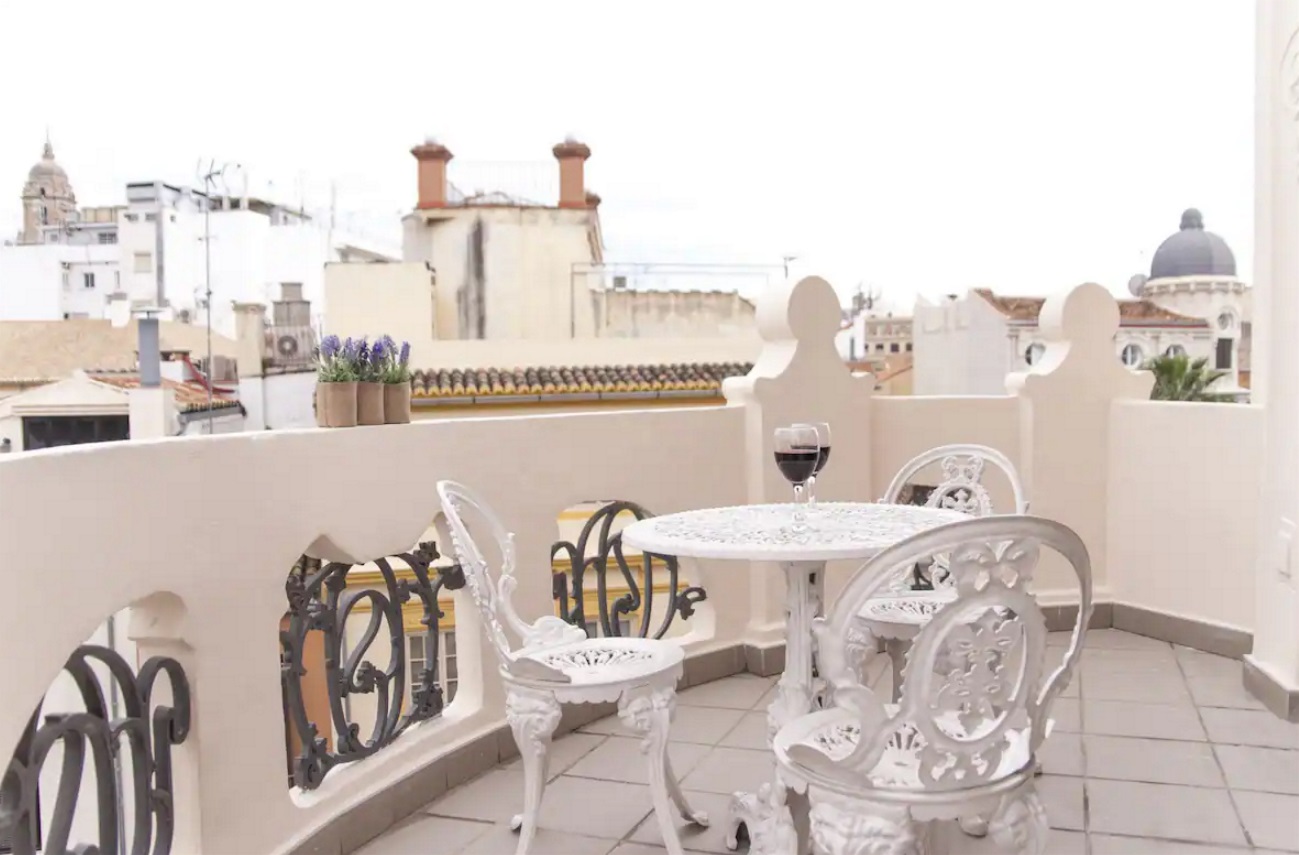 Situado en pleno corazón de Málaga , lujoso apartamento en edifico Emblemático de principios de siglo pasado, con terraza para disfrutar maravillosas vistas, ver amanecer o atardecer sobre la ciudad situado a escasos metros de la Calle más Comercial de Málaga, Calle Larios En pleno centro histórico y cercano a todos los Sitios de interés ( teatro Romano , palacio árabe alcazaba , museo Picasso, mercado atarazanas …) junto a antiguas bodegas como El Pimpi y casa guardia donde poder disfrutar todos los típicos vinos de la región, tapas variadas y todo tipo de “Pescaito“. A tan solo Quince minutos andando de la playa Malagueta con chiringuitos que te ofrecen maravillosas paellas o platos típicos Apartamento totalmente reformado, este exclusivo apartamento está decorado hasta el último detalle con elementos únicos : esculturas, pinturas, elementos decoración , antigüedades y piezas únicas le harán disfrutar aún más de su estancia.Consta de un amplísimo y muy luminoso Salón rodeado de balcones con vistas a la Ciudad , y a la iglesia de San Juan. Dos dormitorios uno de ellos con cama King size y baño en suite con duche y Segundo dormitorio con dos camas individuales y baño Completo con bañera . Cocina independiente y completa con todo tipo electrodomesticos: lavadora, lavavajillas, frigorífico , congelador, horno , microondas, cafetera, tostadora, kettle, plancha ropa y tabla plancha, secador de pelo y menaje completo de cocina .Wifi alta velocidad y escritorio Aire acondicionado frío/calor en todas las estancias.Está ubicado en cuarta planta con ascensor. Plaza de garage gratis en el mismo edificio.