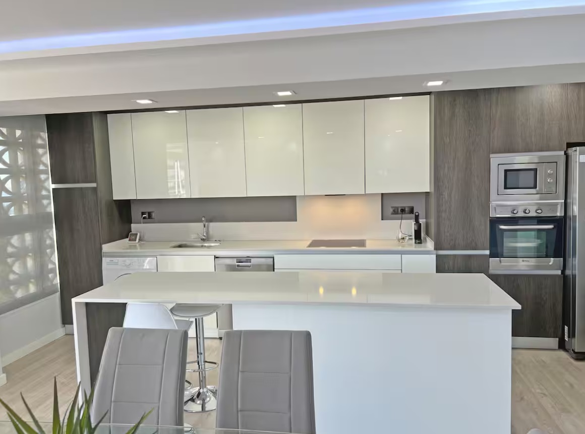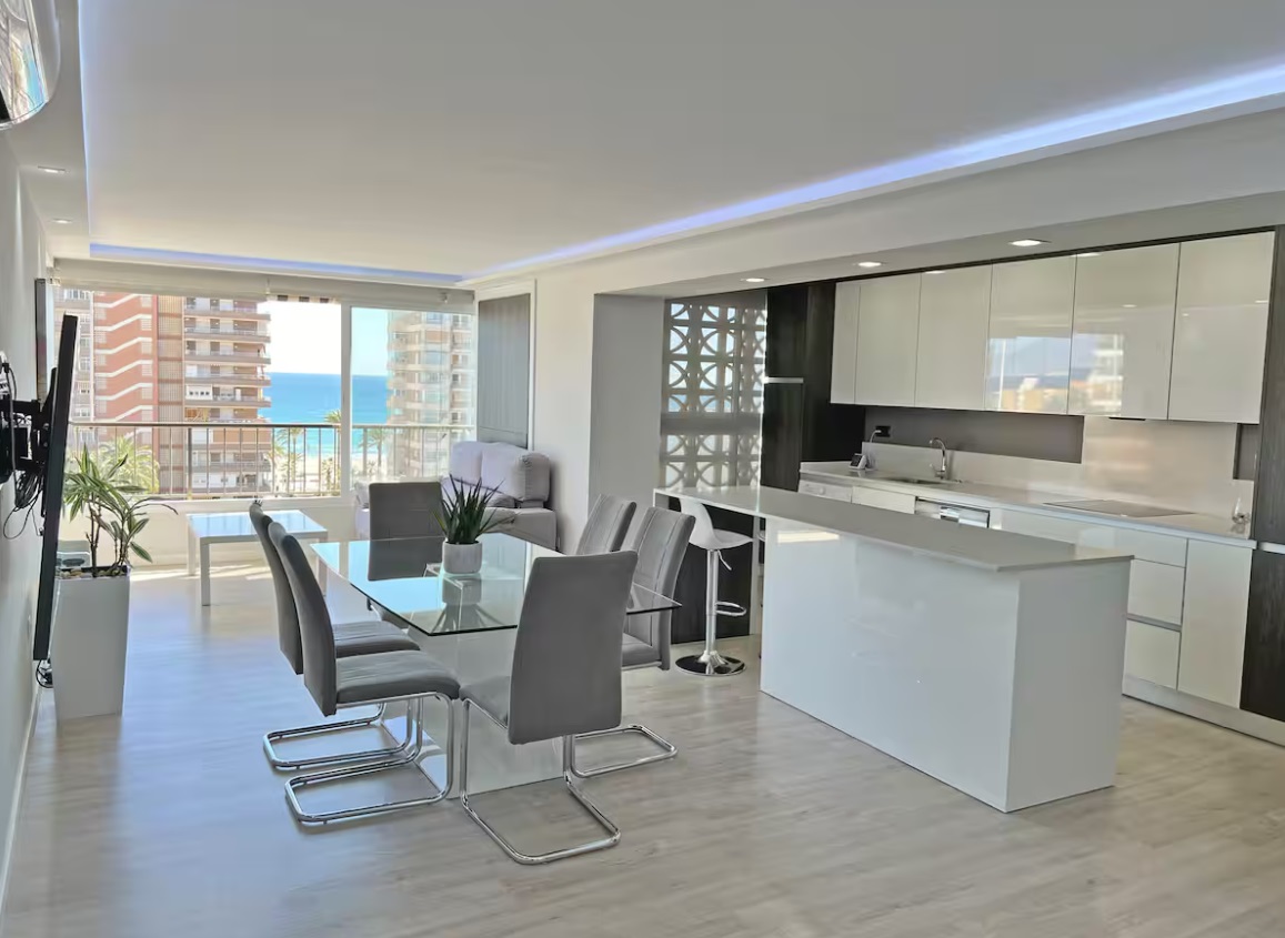 Impresionante apartamento con ASCENSOR, 140m2. A 50m de la playa. 3 habitaciones, 2 salones, gran cocina y 2 baños completos. Parking Gratuito en la urbanización. Acceso privado.