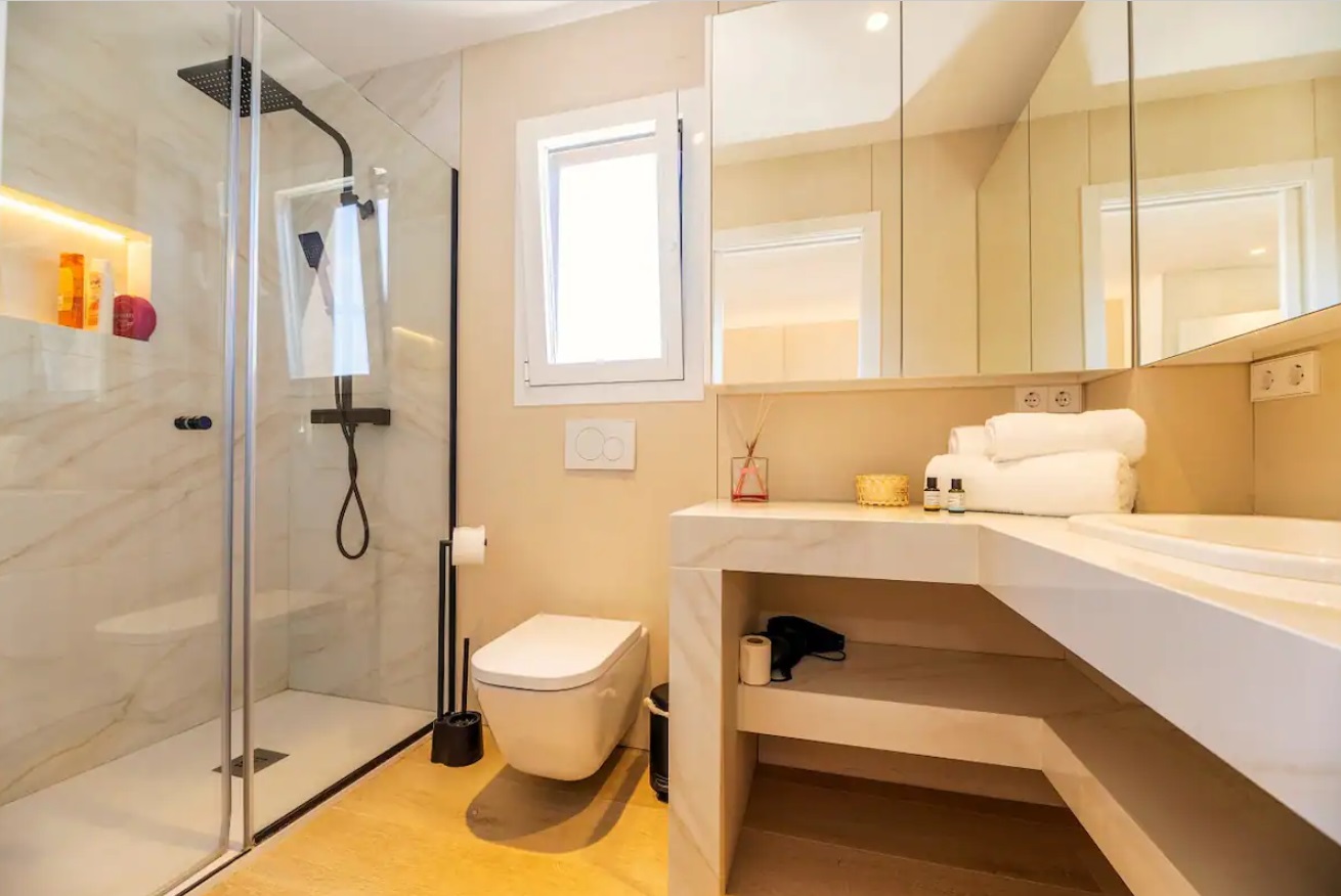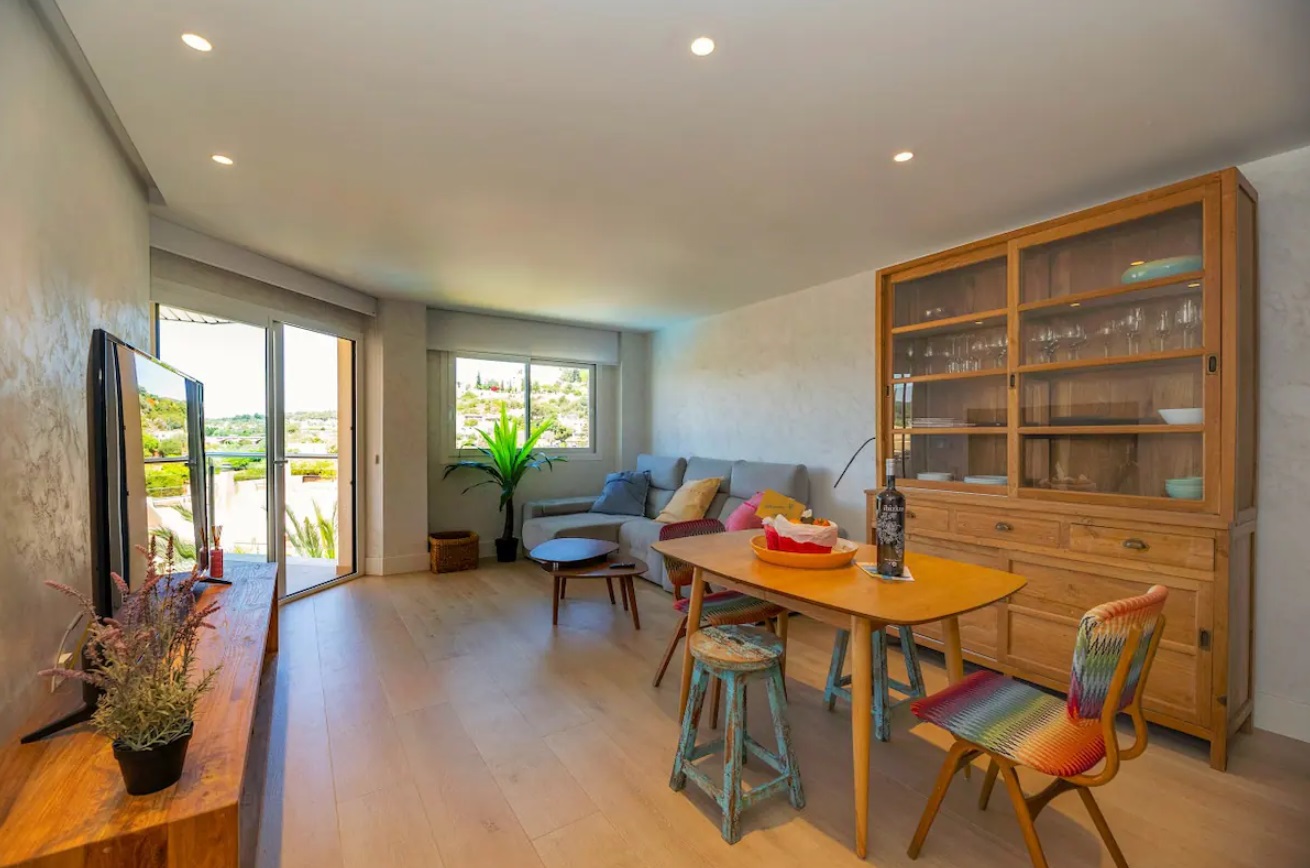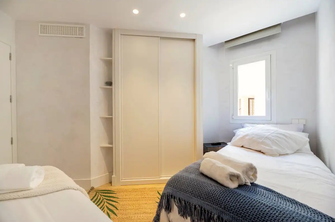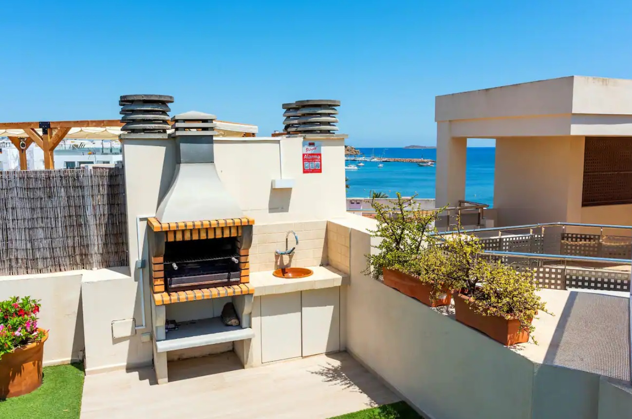 Piso con salón-comedor con cocina incorporada y salida a terraza, 3 habitaciones y 2 baños. En la parte de arriba una terraza propiedad del alojamiento y de uso exclusivo de 100 m. con espectaculares vistas, barbacoa, pérgola, mesa y tumbonas. La vivienda cuenta con calefacción y aire acondicionado. Se encuentra totalmente equipada con toallas y sabanas y menaje de primera calidad. Este excepcional piso se encuentra en una exclusiva urbanización que ofrece no solo comodidad, sino también acceso directo al encantador paseo marítimo de la playa de Santa Eulalia. Desde el momento en que entras, te reciben un espacioso salón-comedor con cocina integrada, tres acogedoras habitaciones y dos elegantes baños. La joya de esta propiedad es, sin duda, la terraza que se extiende desde el salón, proporcionando un espacio al aire libre perfecto para disfrutar de las suaves brisas marinas y las cálidas tardes ibicencas. Pero eso no es todo; en la parte superior, una amplia terraza de uso exclusivo, con 100 metros cuadrados, ofrece un rincón privado de serenidad con espectaculares vistas. Equipada con una barbacoa, pérgola, mesa y tumbonas, esta terraza se convierte en un oasis personal para relajarse o entretenerse. La propiedad está diseñada para ofrecer no solo una experiencia visualmente impresionante, sino también una comodidad excepcional. La calefacción y el aire acondicionado aseguran un clima agradable en cualquier estación del año. Además, la vivienda se presenta totalmente equipada con toallas, sábanas y menaje de alta calidad, proporcionando una experiencia residencial de lujo.