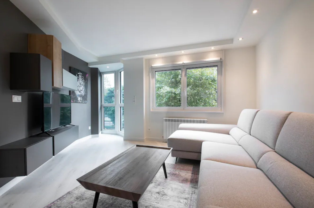 A 5 min hasta la playa La Concha. Se trata de los apartamentos muy originales, totalmente reformados y con todas las comodidades de una vivienda actual, a dos minutos andando del centro histórico, rodeado de restaurantes, supermercados, farmacias, bancos y todos los servicios. dos dormitorios dobles, una de ellos con camas individuales, dos baños completos, cocina totalmente equipada (lavavajillas, horno, microondas, cafetera, tostadora y etc.).