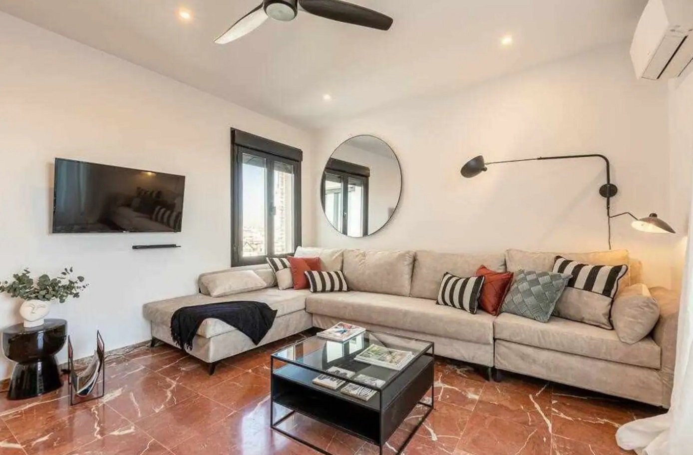 En el corazón de Sevilla frente a los tres Monumentos Patrimonio de la Humanidad. Consta de 2 dormitorios, 2 baños, salón, comedor y cocina con toda suerte de electrodomésticos, tostadora, batidora, hervidor de agua, cafetera Nespresso, que harán inolvidable su estancia. Terraza con inmejorables vistas a los principales monumentos de Sevilla. Maravilloso apartamento de lujo a estrenar en el corazón de Sevilla frente a los tres Monumentos Patrimonio de la Humanidad: Catedral y Giralda, Archivo de Indias y Reales Alcázares. Consta de 2 dormitorios, 2 baños, salón con chimenea eléctrica, ventiladores de techo, Smart TV, comedor y cocina con toda suerte de electrodomésticos: tostadora, nevera, lavavajillas, batidora, hervidor de agua, tostadora, cafetera Nespresso etc… que harán inolvidable su estancia.