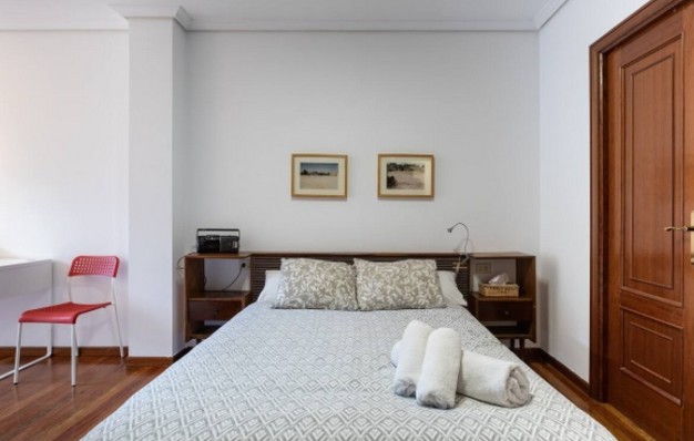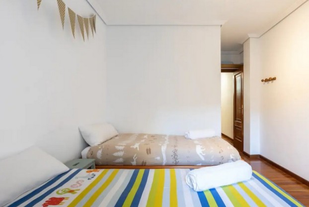 La habitación principal es muy amplia con mesa de trabajo para el ordenador, tiene una cama de 1,50 con colchón de látex y televisión, con el baño en suite. La otra tiene una cama nido con colchones de 90, uno viscoelastico y otro de muelles.