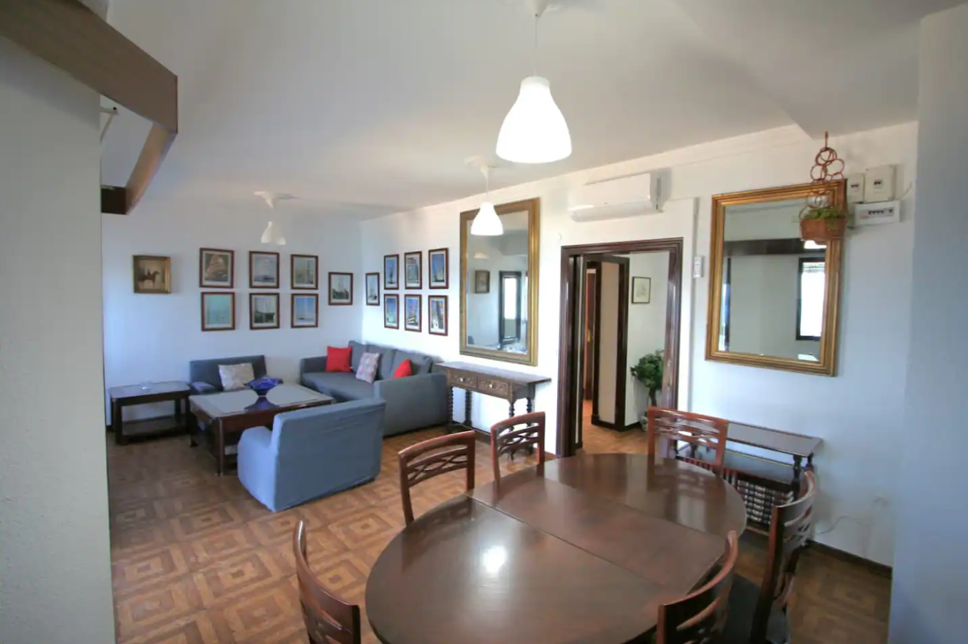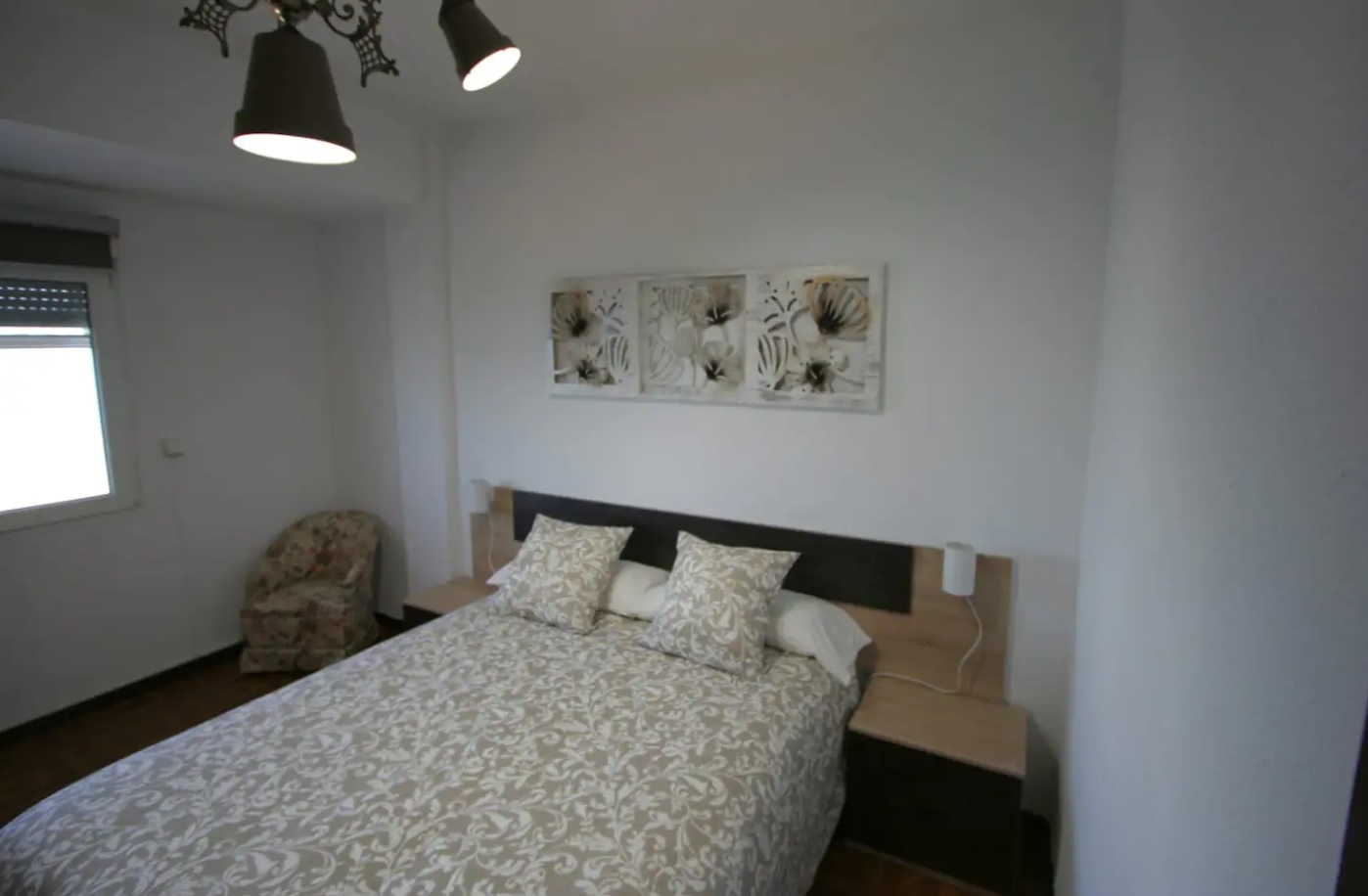 Consta de 3 habitaciones ( 1 con cama de matrimonio , otra de dos camas individuales y otra con cama individual ) y sofá cama en espacio común (salón) para dos personas. Apartamento amplio con todo lo que necesita a su alrededor .